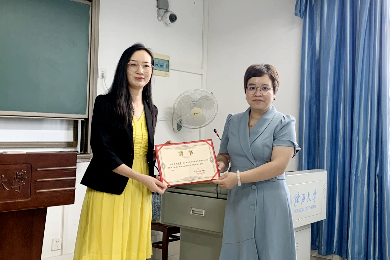 阳瑾瑜老师代表学院向甘卓霞常务副总经理颁发聘书