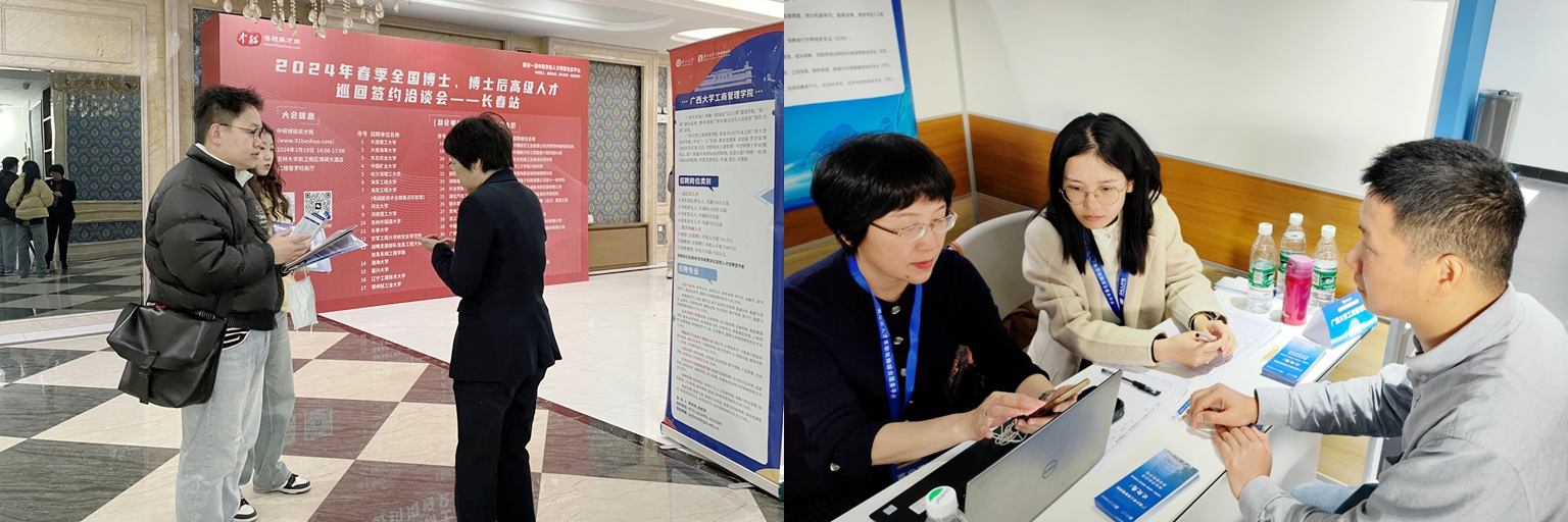 廖东红副院长在高校博士生招聘现场长春站(左)、成都站(右)讲解学院人才政策