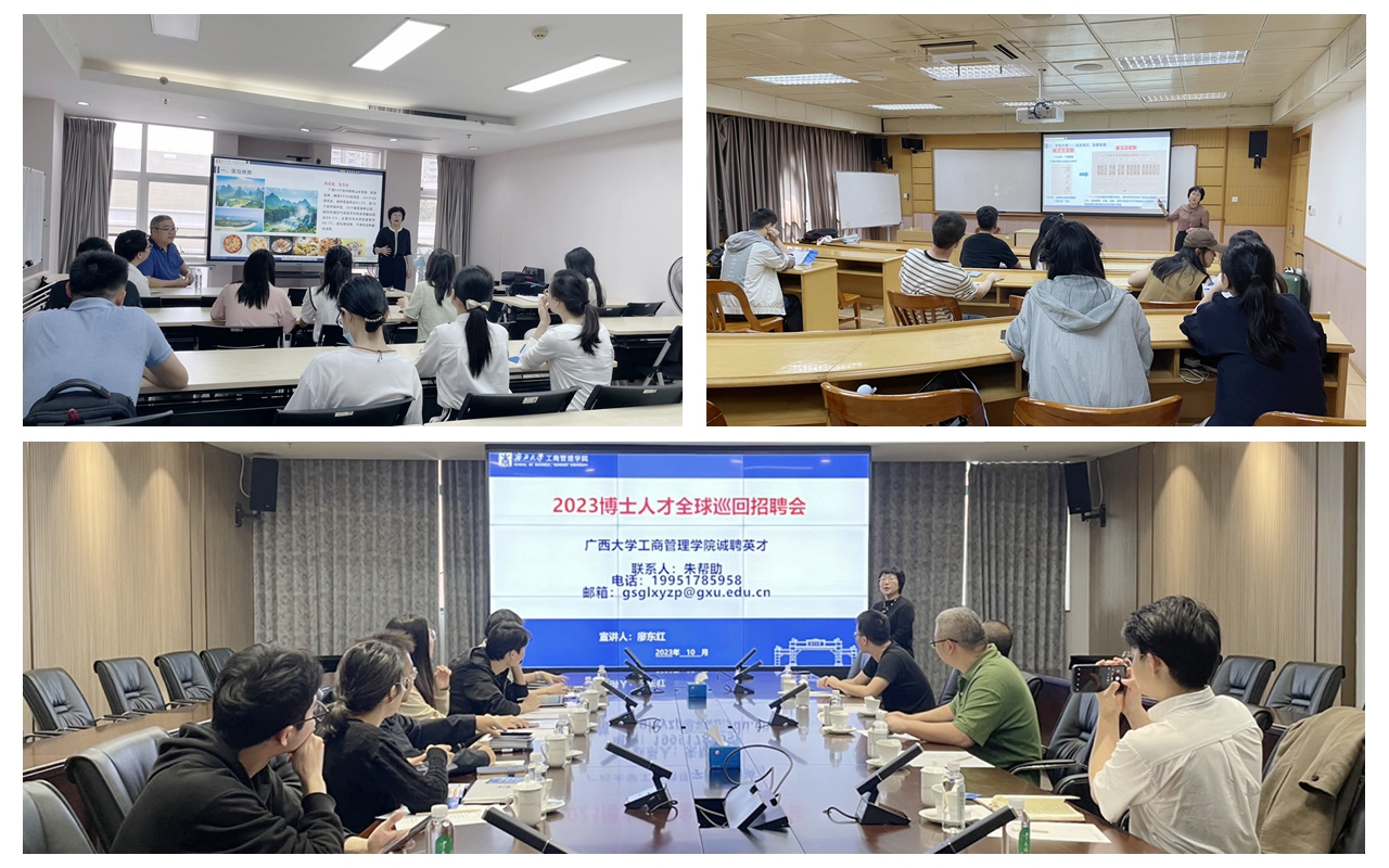 廖东红副院长分别在暨南大学管理学院(左上)、厦门大学管理学院(右上)、中山大学管理学院(中)开展人才招聘宣讲