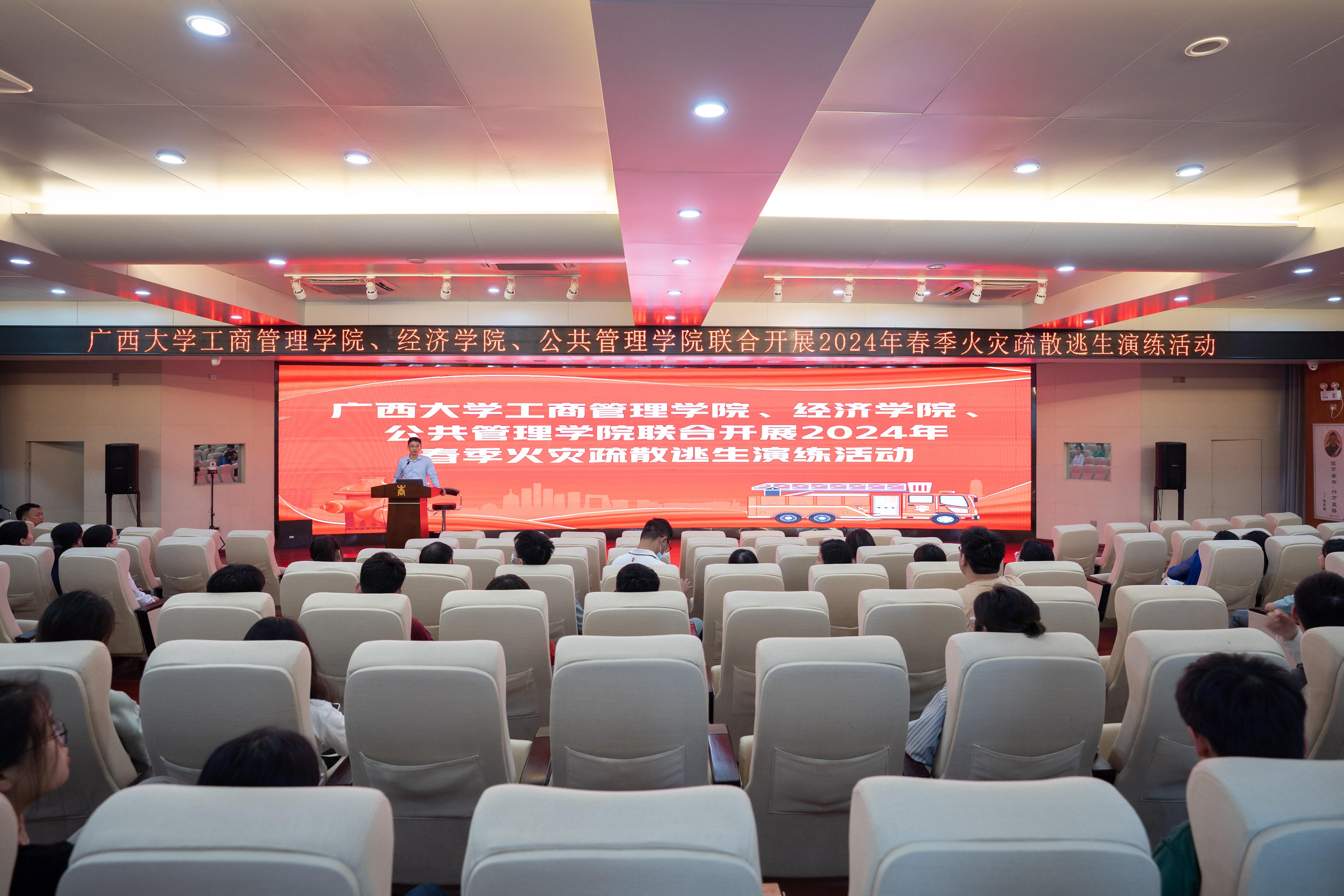 与经济学院/中国-东盟金融合作学院、公共管理学院联合开展2024年春季消防安全培训及演练活动。学校保卫处消防安全管理岗负责人黄光电老师及工作人员来到现场指导工作,三院师生代表共170余人参加活动。H动画