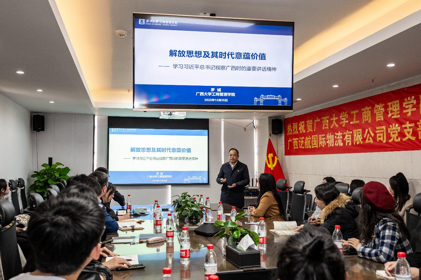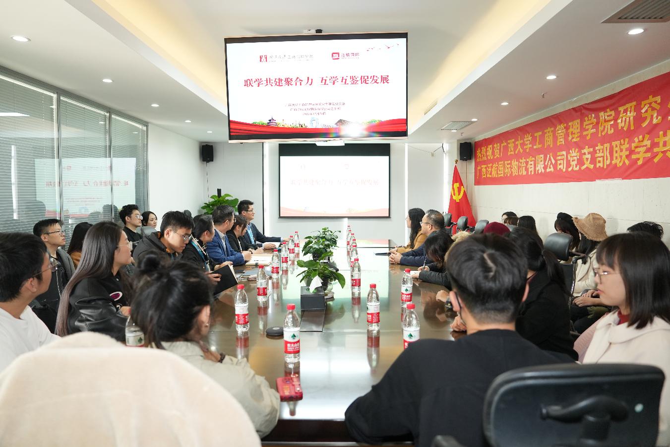 研究生第五党支部赴广西泛航国际物流有限公司(以下简称“泛航公司”),探访民营企业发展环境,了解现代民企发展现状及趋势,并与该公司党支部开展联学共建活动。学院党委书记罗诚,泛航公司党支部书记、董事长、H动画