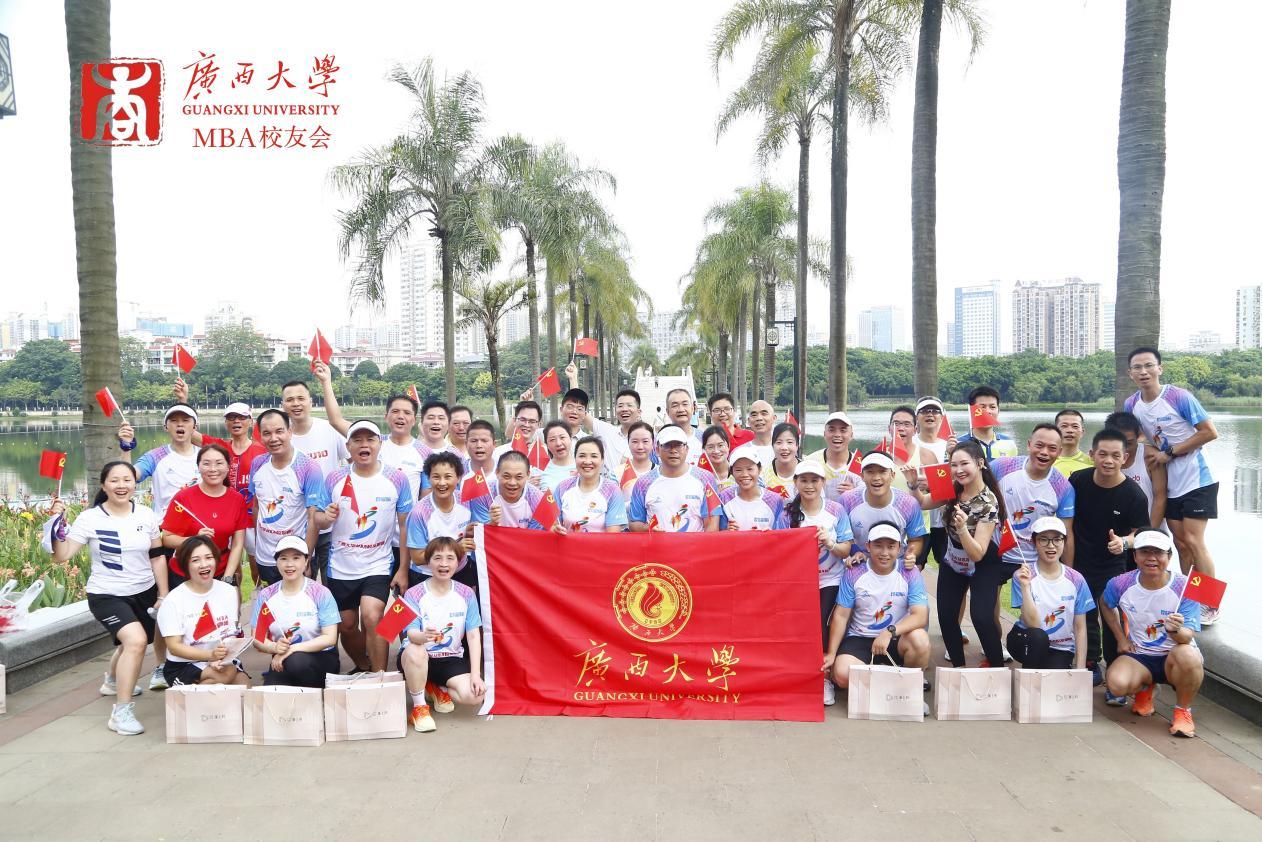 在中国共产党成立102周年之际,7月1日上午,学院党委书记罗诚与学院MBA、EMBA校友一起,在南宁市南湖公园参加了由H动画