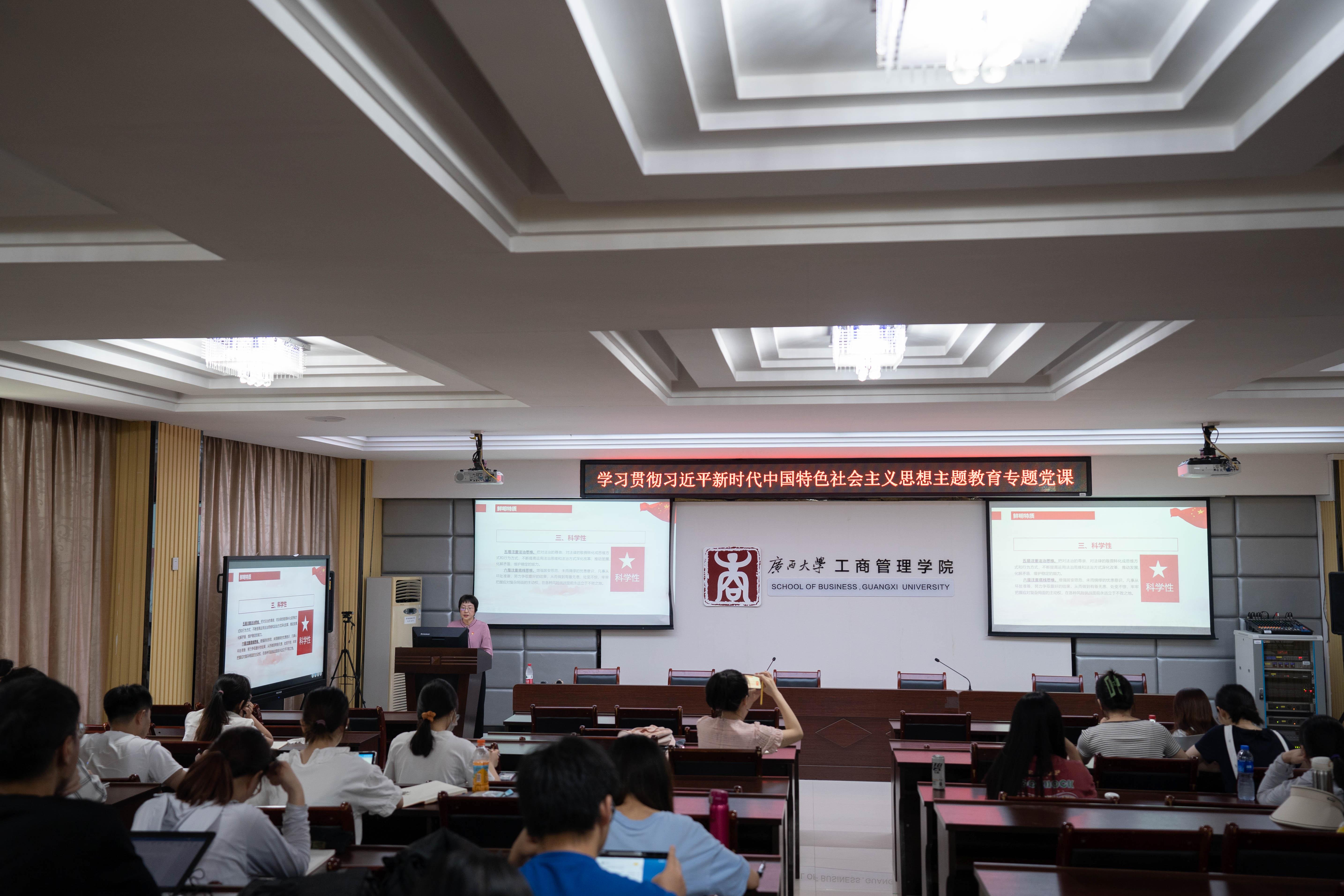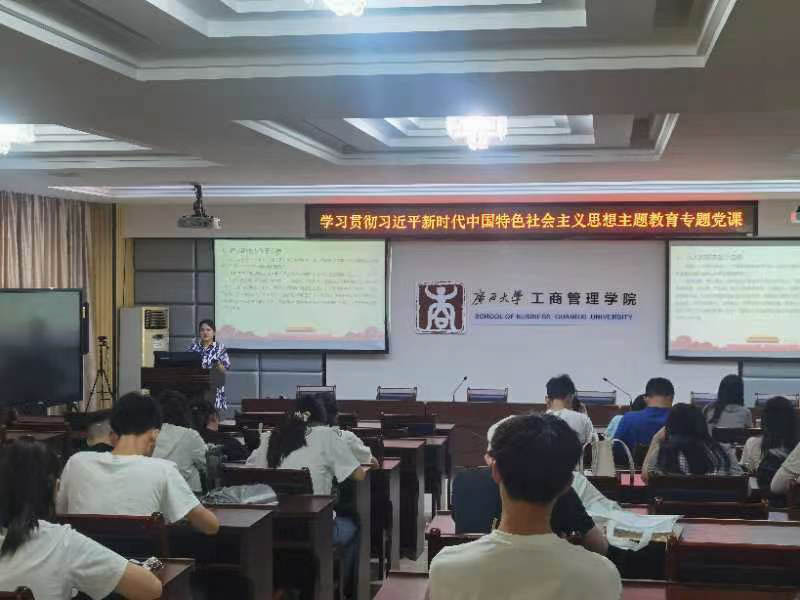 学院副院长廖东红以《学习贯彻习近平新时代中国特色社会主义思想》为题,在学院124报告厅为研究生第一党支部和本科生第四党支部讲授专题党课,她就习近平新时代中国特色社会主义思想主题教育概述、主要内容以及鲜明特质进行了阐述。她号召大家以主题教育为契机,深入学习贯彻党的二十大精神,努力把学院建成“区域有品牌,国内有特色,国际有影响”的新时代高水平H动画