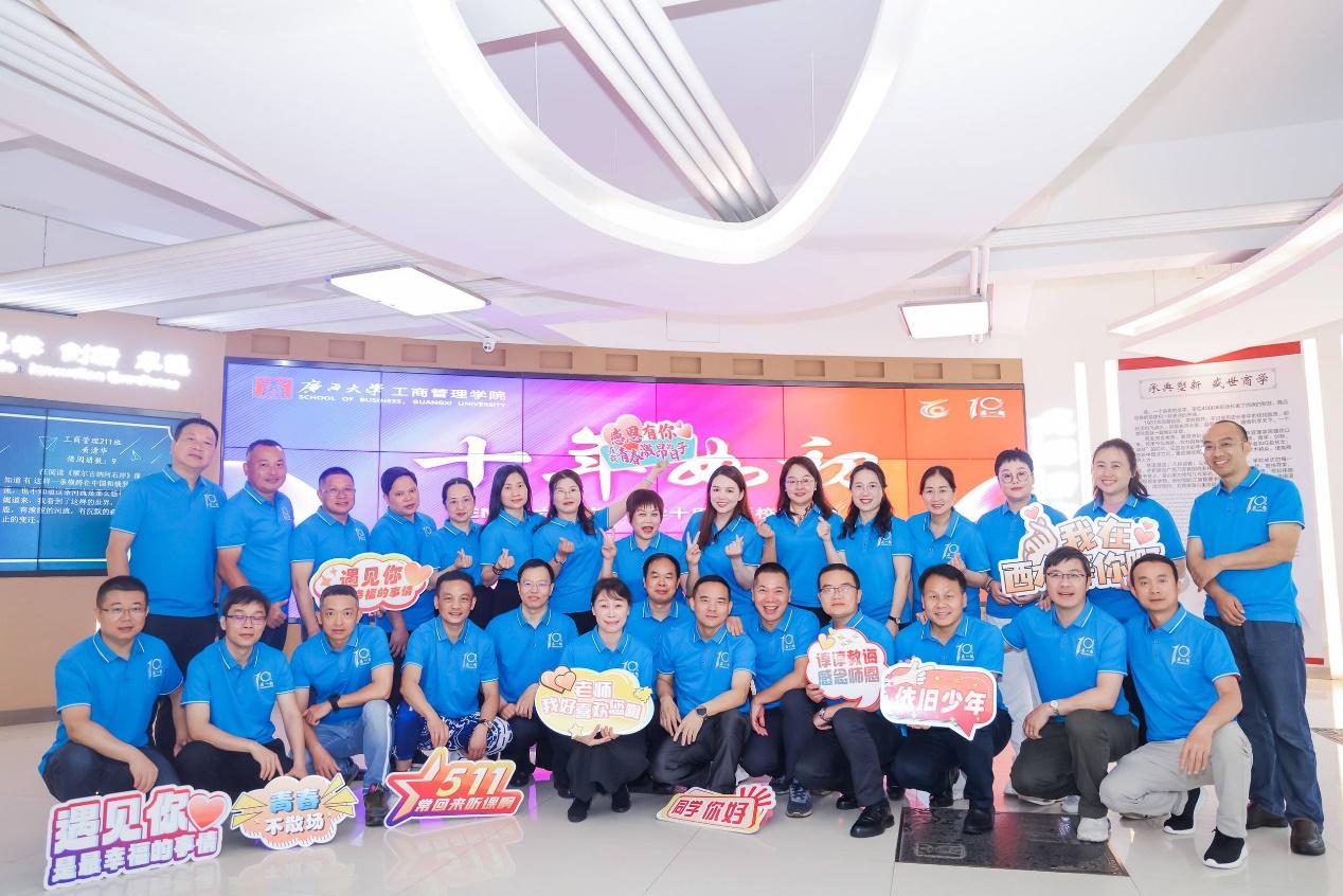 本次返校主题为“十年如初”。据悉,EMBA六班校友是在2012年的12月22日入学的,全班同学把班级精神定为“在一起”,在校学习阶段和毕业后举办了丰富多彩的活动很好地融汇和践行了这一宗旨。2022年是EMBA六班入学十周年,班级较早地成立了十周年筹备组,开展了动员和策划各项前期活动。但由于新冠疫情原因不得已延迟到了2023年。本次聚会全班有45名同学返校参加座谈会,占全班同学的70%。虽然毕业良久,校友们依旧激情澎湃,饱含感情。校友们为老师准备了鲜花表示敬意,回顾了在EMBA的学习初心和满满收获,分享了有笑有泪有爱有感动的十年同窗情。座谈会上,大家齐声合唱建班之初创作的歌曲《西大欢迎你》,共同观看了同学们电子相册“EMBA六班十年风采录”和同学们亲自出演的MV《曾经的你》,现场气氛热烈,掌声不断。最后,大家共同期待和拥抱下一个十年。
