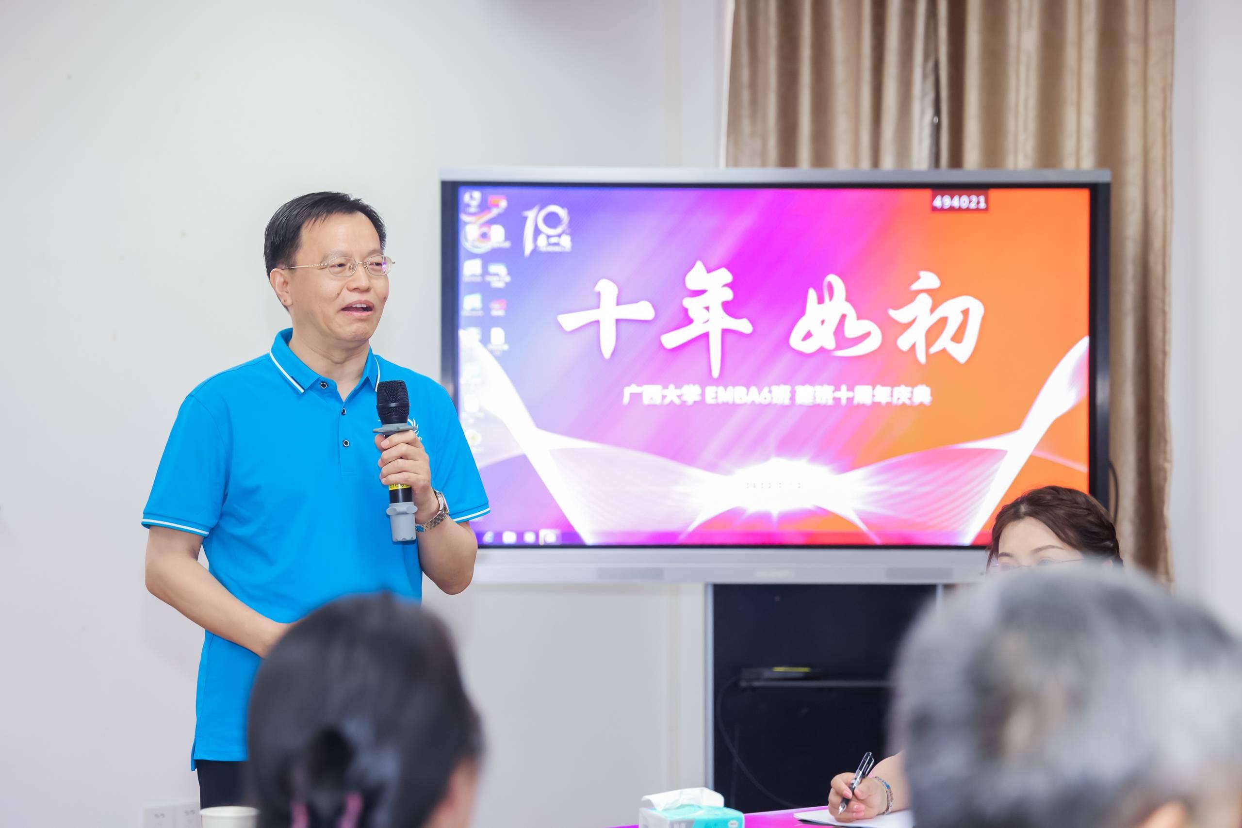 罗诚书记首先代表学院党委、行政对返校的EMBA六班校友们表示了热烈的欢迎和诚挚的问候,并向大家介绍了十年来学院以及EMBA教育的变化与发展,以及在学科建设、教学科研和人才培养等方面取得的佳绩。罗书记强调,母校是校友永远的家园,校友力量是母校建设发展的坚强基石。他希望校友们能一如既往地关心和支持母校,凝心聚力,共同推动学院事业的蓬勃发展,也欢迎校友们常回母校走走,常回学院看看。