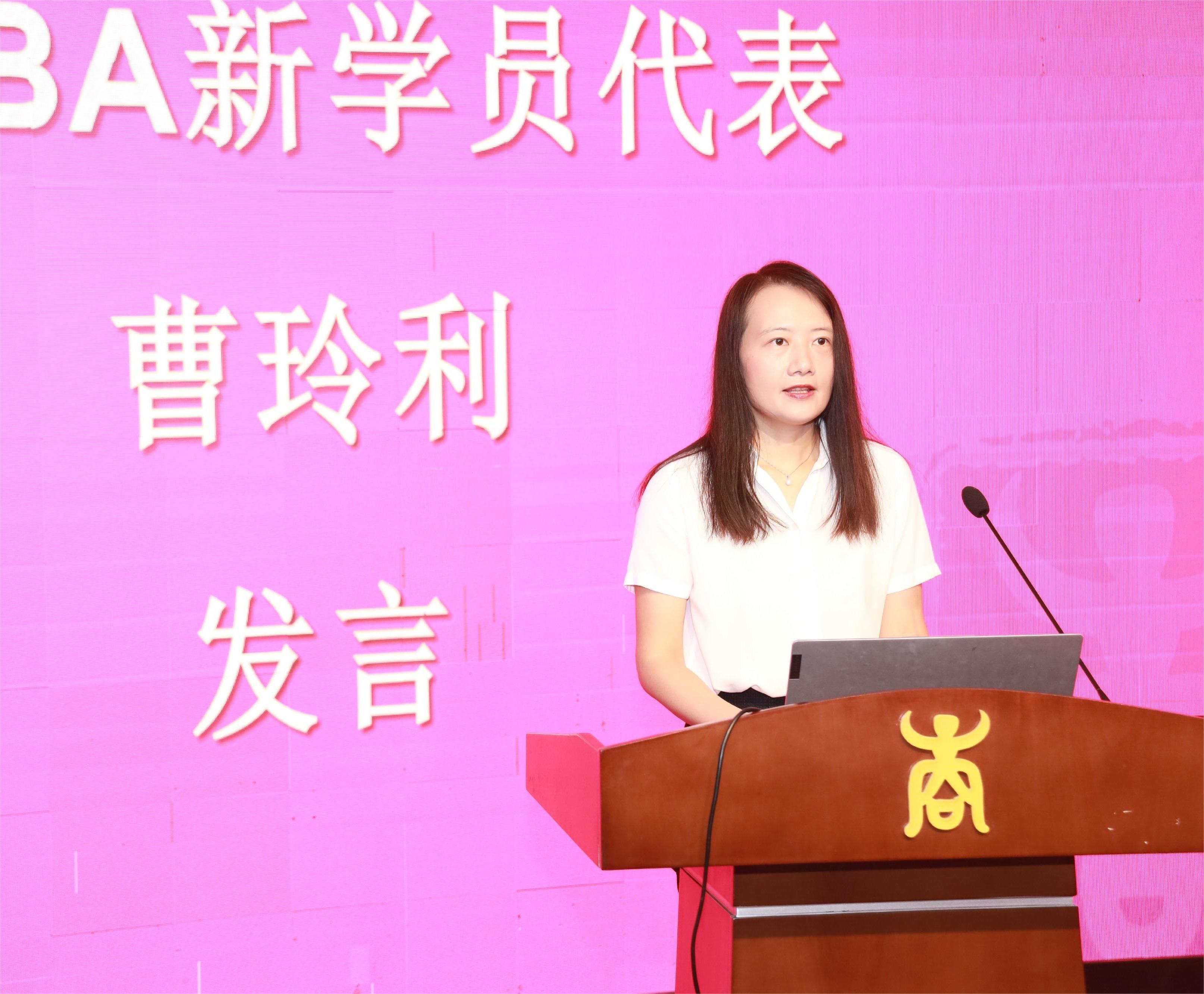 新学员代表曹玲利表示学习机会来之不易,同学们应当倍加珍惜,学有所成。在未来两年的学习中她将会做到:一是明确目标,努力学习,提升管理能力;二是知行合一,学以致用,回馈社会。最后她表示要紧跟学校的步伐,牢记学校的校训“勤恳朴诚、厚学致新”,努力奋斗,力争成为管理领域的领袖和社会的精英。