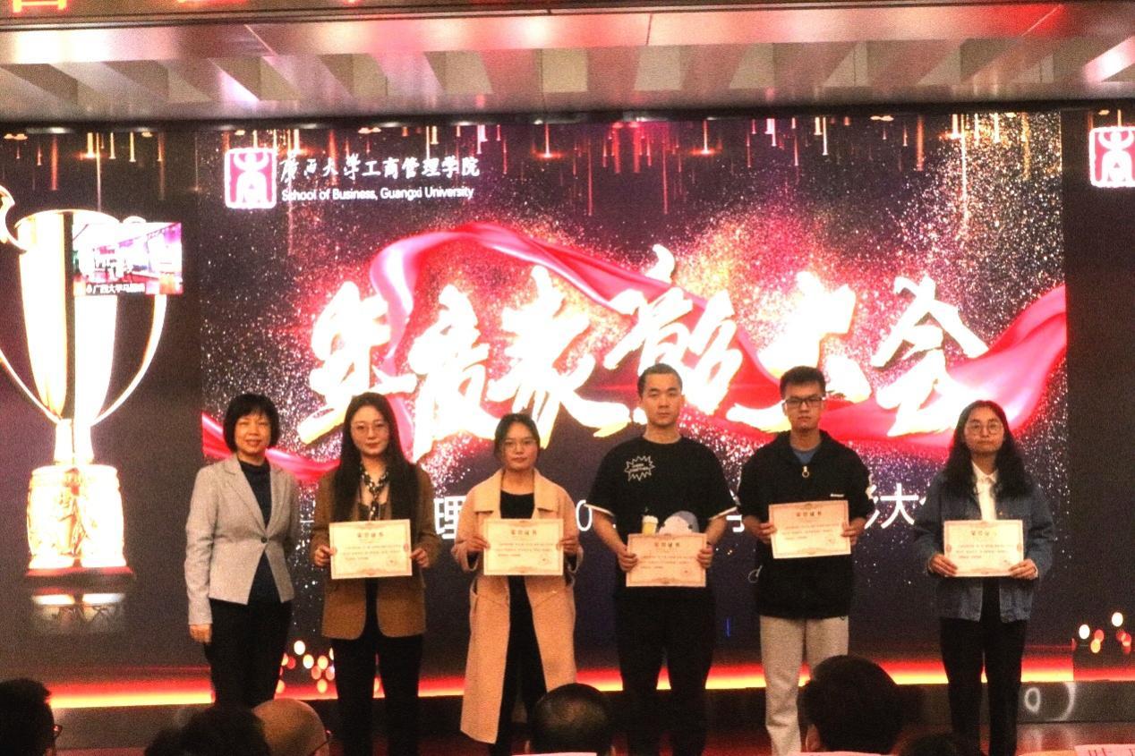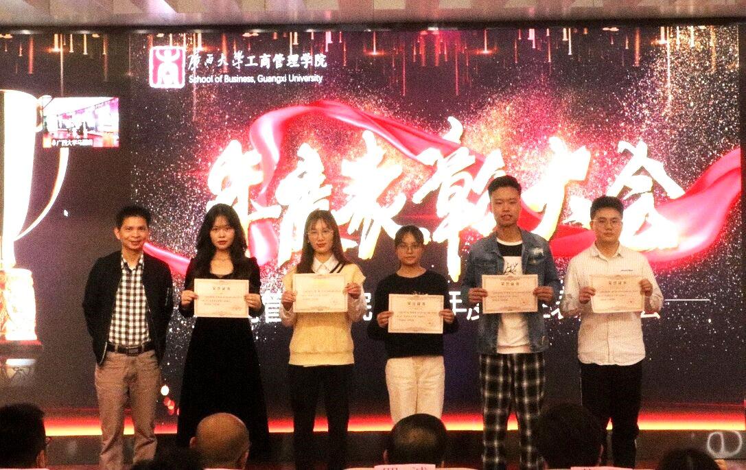 最后,学院领导、嘉宾、老师给获奖学生颁发证书、奖杯等,并合影留念!