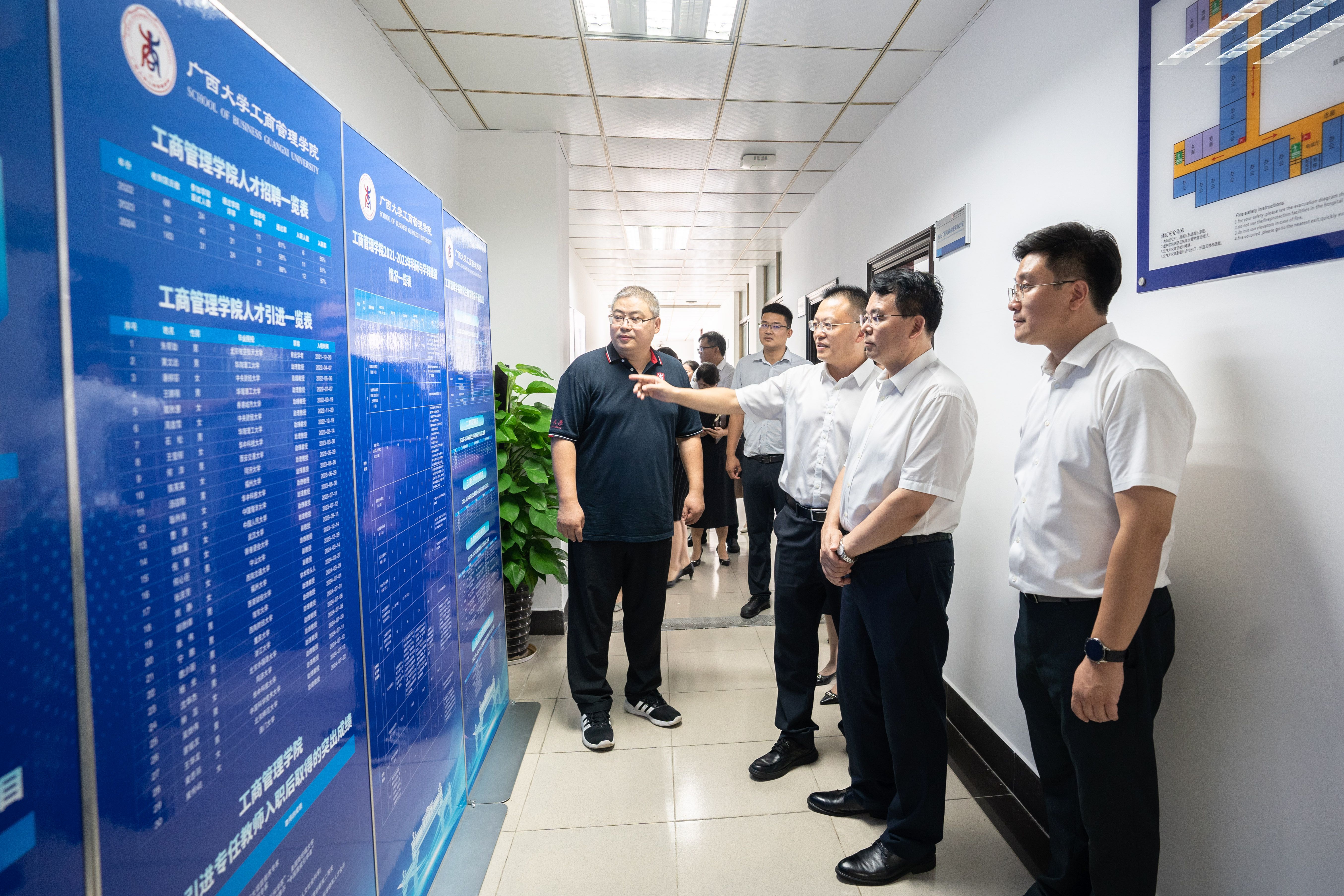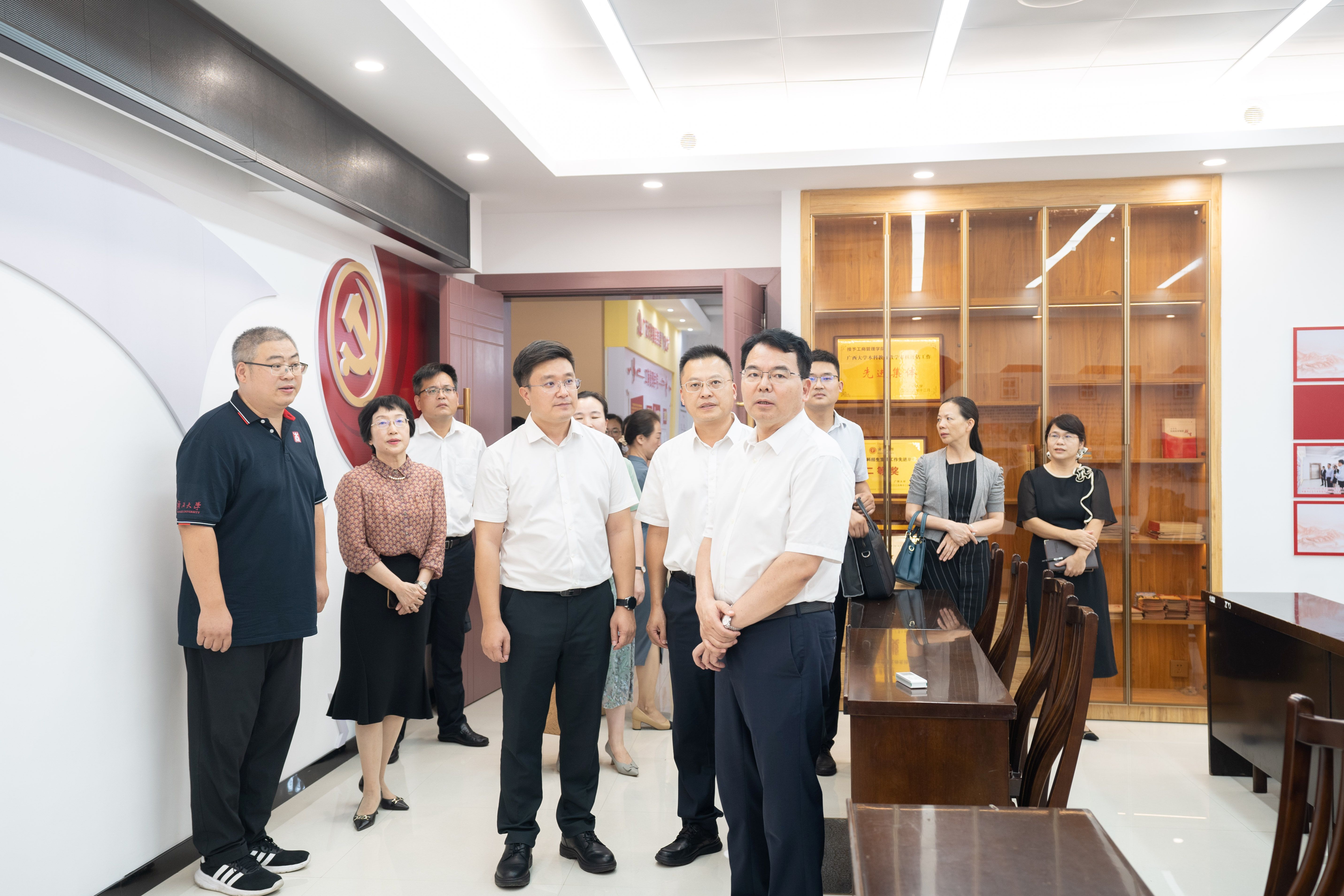 调研期间,李国忠书记一行实地考察了学院党员活动室、实验室、教师工作间、研讨室、研究生自习卡座等场所,查看了学院近三年来党建引领、人才培养、科学研究、学科建设、人才引进、学生学科竞赛等成果展。