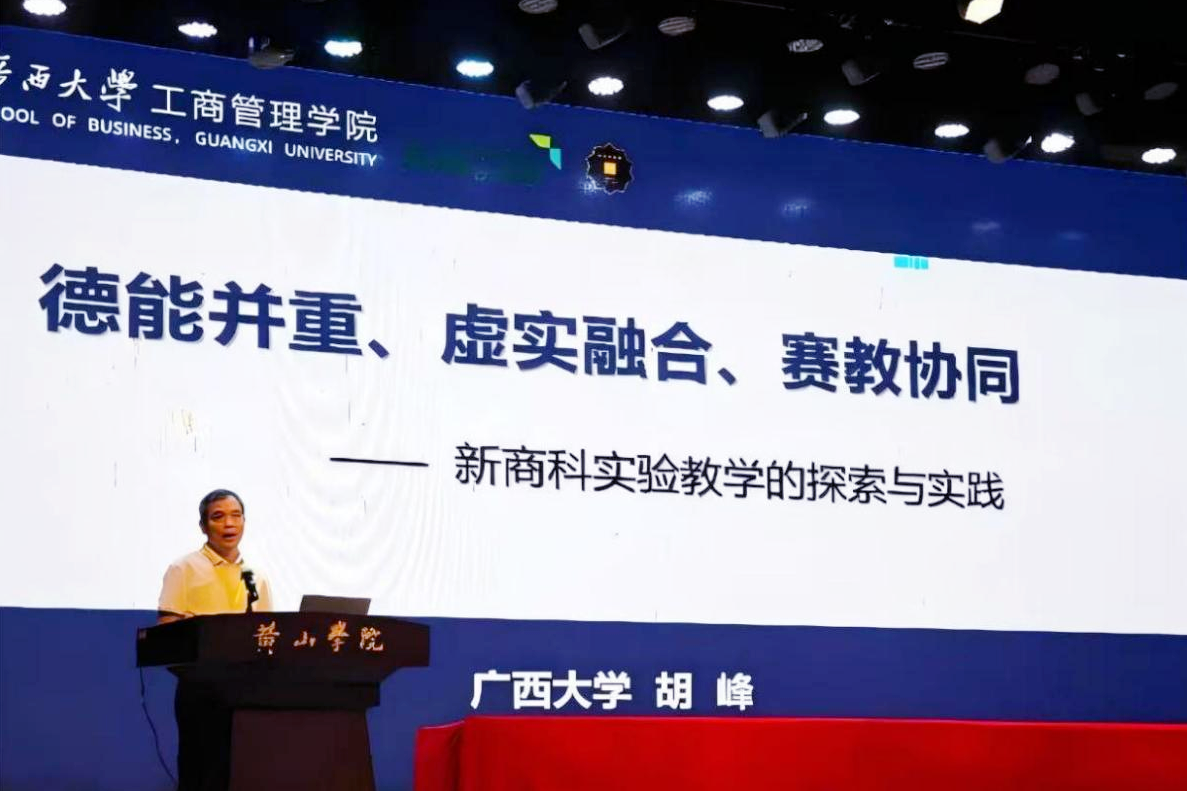 获 “优秀组织单位”奖。企业管理系胡峰副教授应邀在会上作“德能并重、虚实融合、赛教协同——新商科实验教学的探索与实践”主题报告。