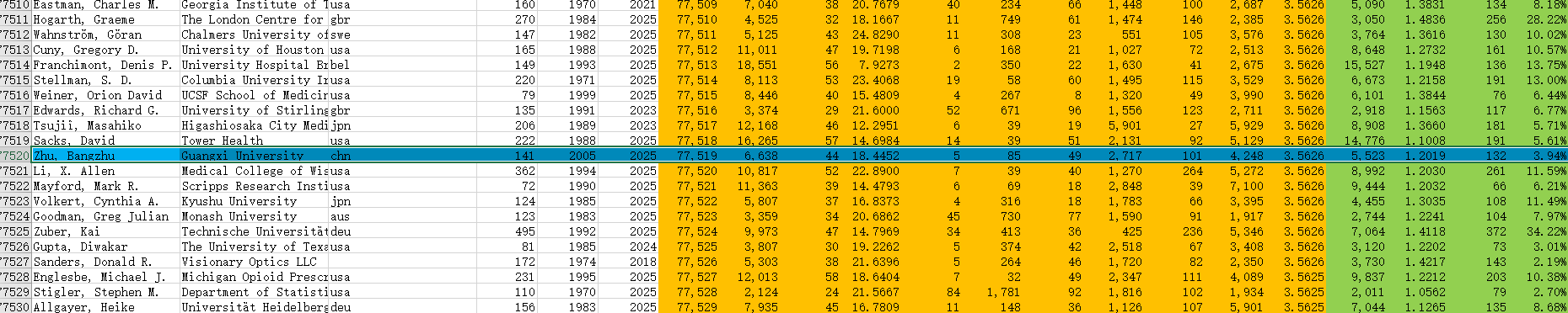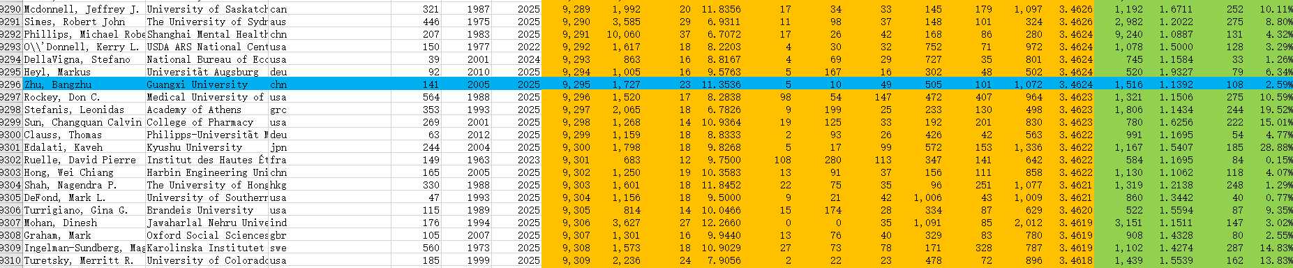 朱帮助教授继2022年、2023年、2024年再度荣耀上榜,实现四次入选榜单,同时入选“终身科学影响力排行榜”(全球上榜230333人,中国12374人)和“年度科学影响力排行榜”(全球上榜236313人,中国31685人)榜单。