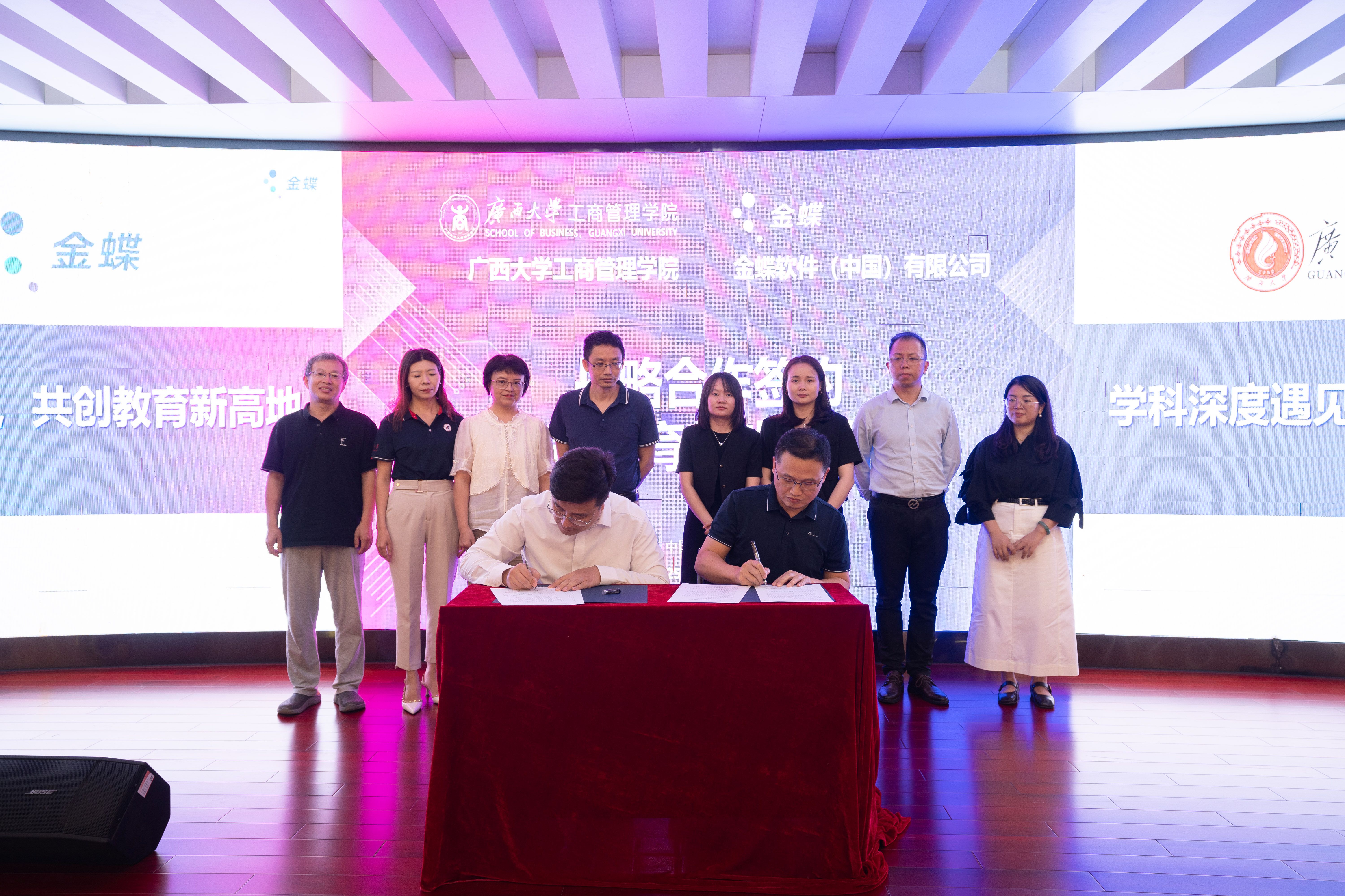 金蝶广西分公司市场部总监游阳、解决方案部高级顾问邓旭、院校业务经理韦晓春,H动画