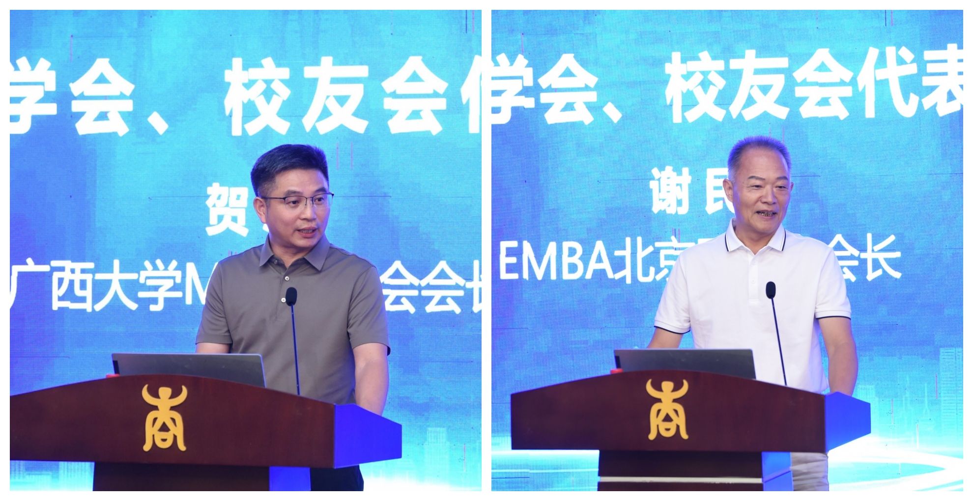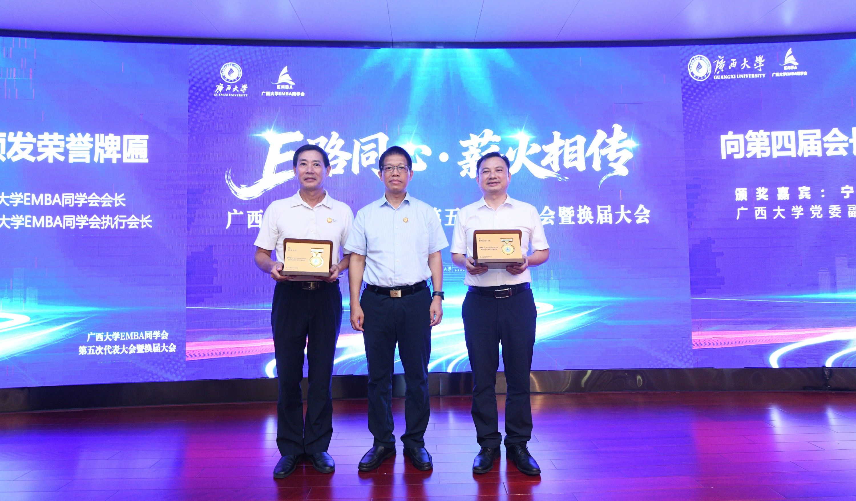 在换届大会上,校党委副书记宁旭初代表学校向EMBA校友长期以来对母校的关心和支持表示感谢。他与校友们分享了学校在融入国家和区域发展战略、增强服务广西经济社会发展效能上取得的重大标志性成果。他强调,校友是母校宝贵的财富,是推动学校高质量发展的重要力量。学校历来重视校友与社会服务工作,将持续为广大校友搭建更多合作平台、提供全方位服务。他希望校友会严守意识形态阵地,筑牢思想引领根基,以校史校训为精神内核,汇聚起向上向善的校友力量;凝聚校友合力,共筑发展共同体,形成校友与学校双向价值共创的良性循环;聚焦服务赋能,提升校友价值,为建设壮美广西贡献西大力量。