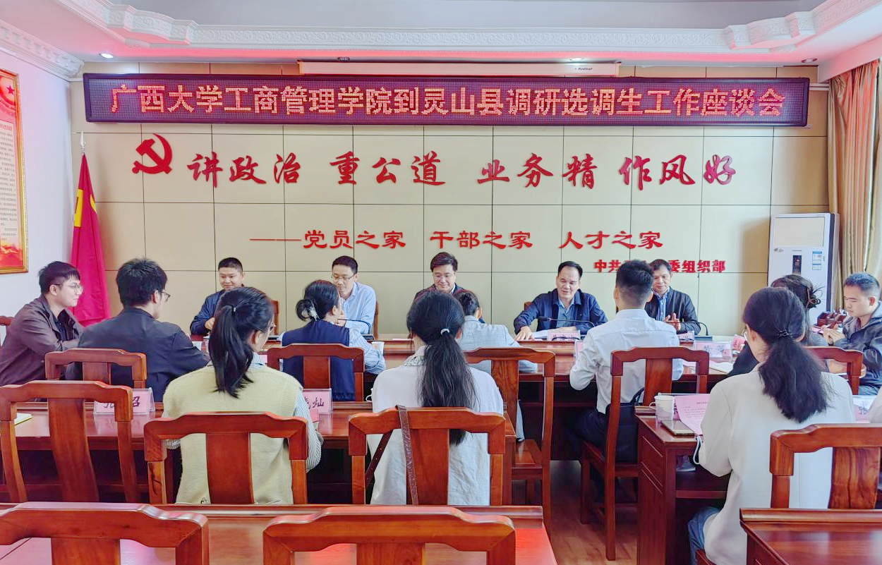 党委书记黄晋带队赴灵山县、浦北县走访调研选调生工作,校校友办副主任黄庶冰、院党委副书记肖克宁、组织员黄照温、校学生工作部王天亮参加调研。浦北县委常委、组织部部长钟远才、灵山县委组织部副部长黄静文出席并分别主持座谈会,在灵山县、浦北县工作的19名选调生校友参会交流。