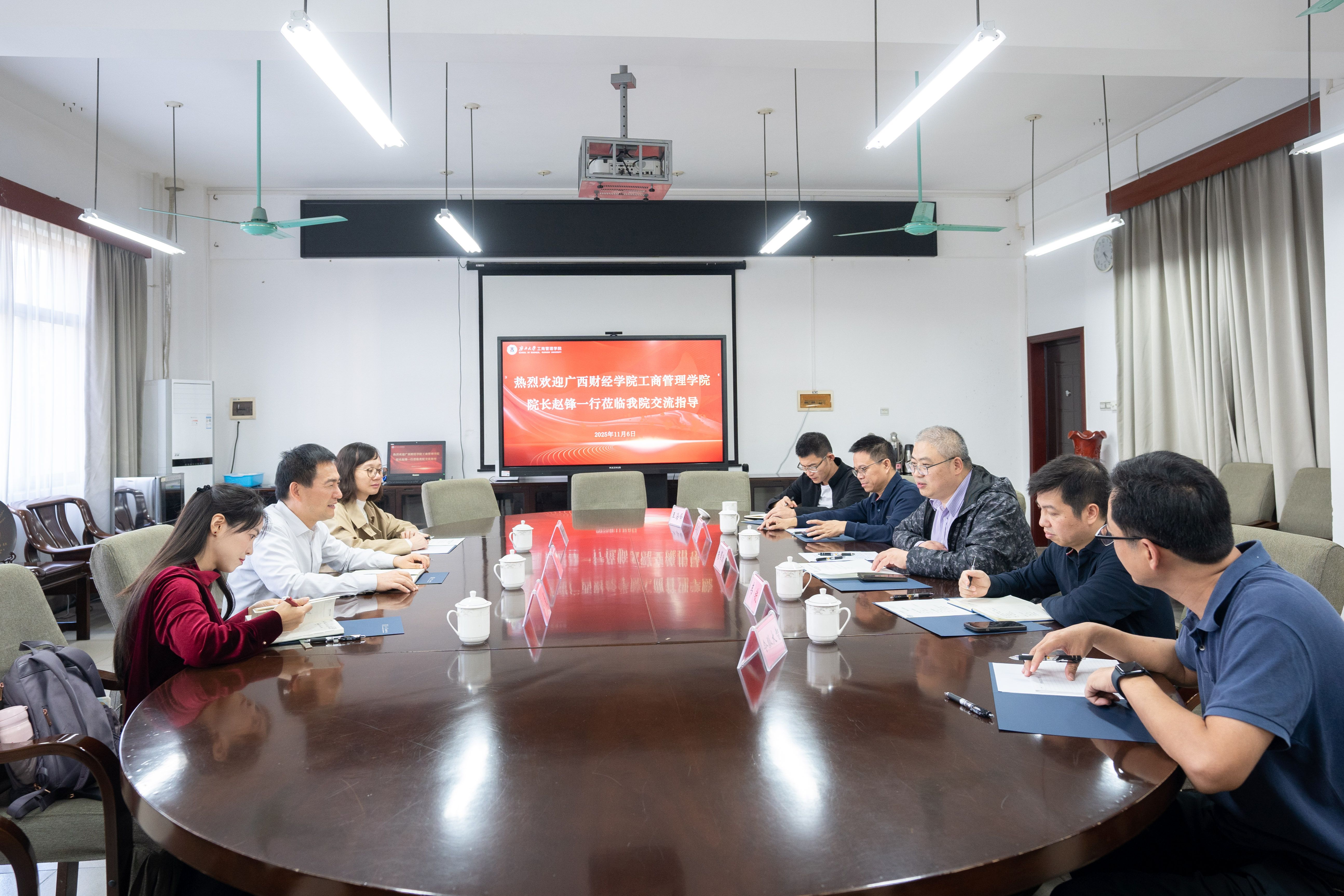 的办学特色、学科建设、师资力量与人才培养等情况。他表示,两院在学科领域有诸多共通之处,具备良好的合作基础,希望双方加强交流,分享在教学、科研、社会服务等方面的经验,在人才培养和学科建设上取得新的突破,为广西经济社会发展培养更多优秀的商科人才,实现互利共赢的良好局面。