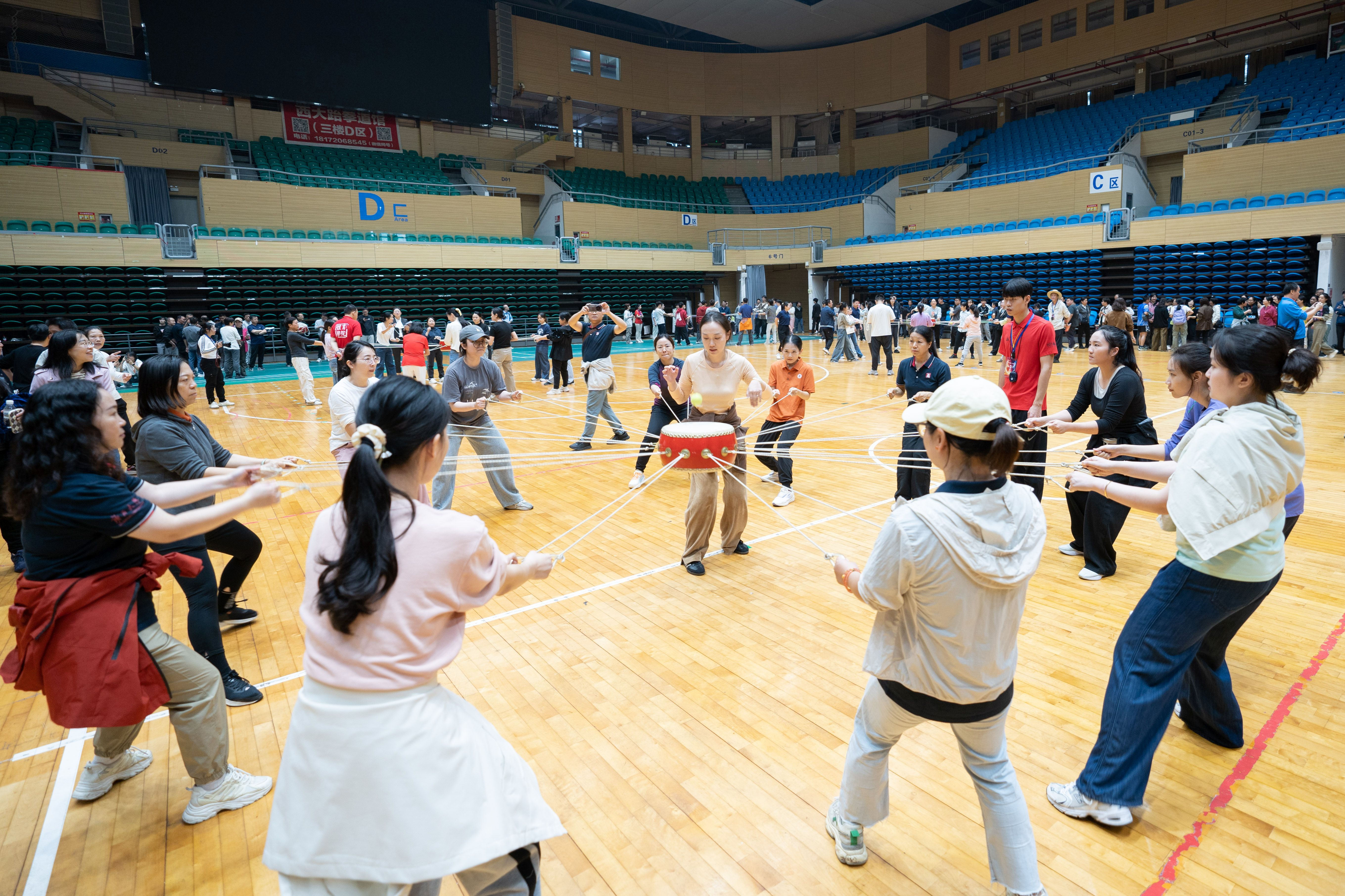 代表队在女子击鼓颠球比赛中