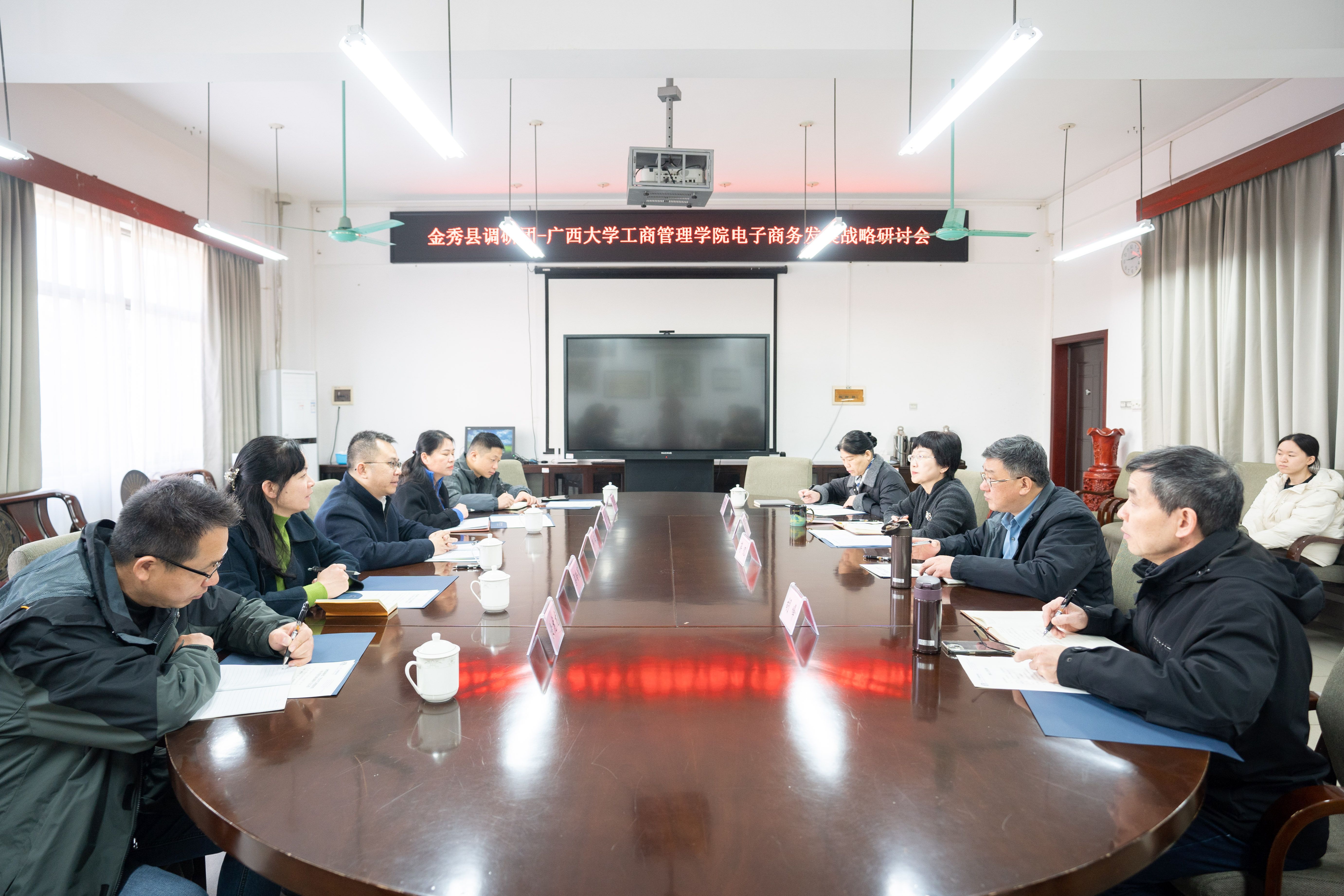 座谈会上,双方聚焦农产品品牌塑造、县域公共品牌建设、电商人才培养创新等关键问题交换意见。金秀县相关部门介绍了当地电商现状与发展需求,参会教师代表结合教学与实践案例提出多项可行性建议。