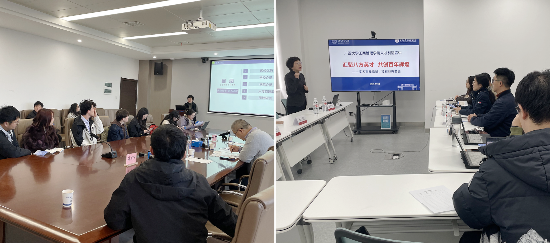 廖东红在中南大学商学院(左)、上海交通大学环境科学与工程学院(右)宣讲