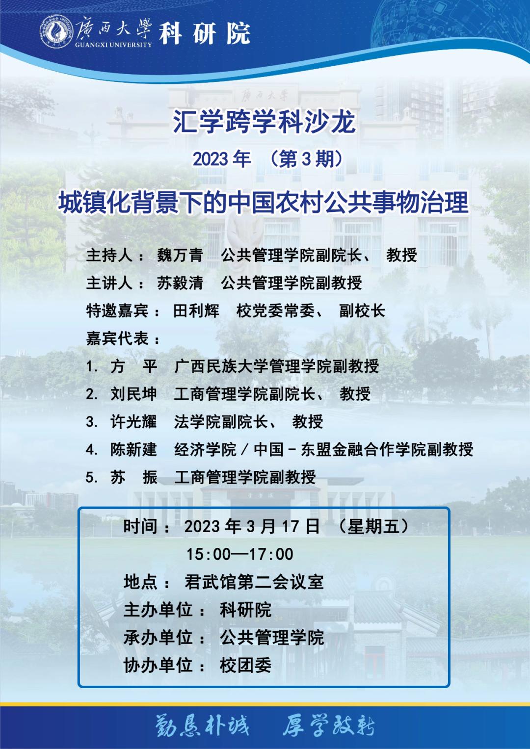 汇学跨学科沙龙 2023年(第3期)城镇化背景下的中国农村公共事物治理