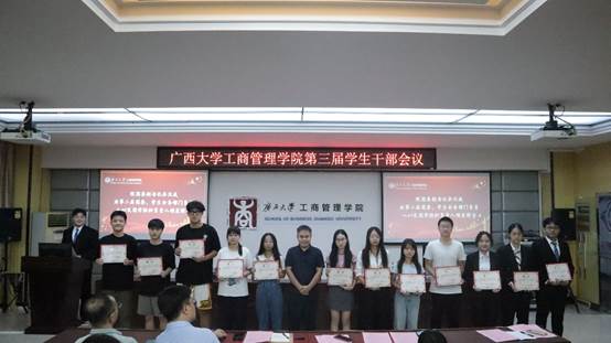 为表彰上一届团学组织干部的工作,增强新一届学生干部的凝聚力,进一步推动学院学生工作管理成效。9月19日下午3点,H动画 于学院124教室,召开第三届全体学生干部会议。院党委副书记黄晋、院团委书记马丽娟、院团委副书记岑汉成、院学生辅导员莫秀德、郁文丹出席本次会议。