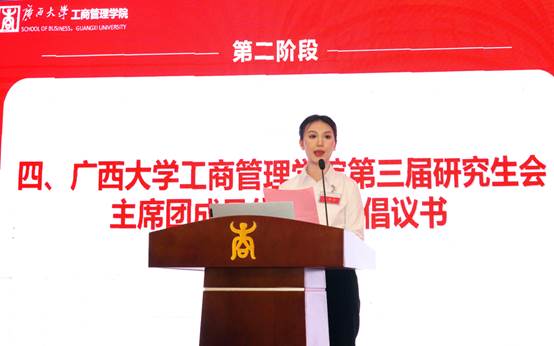 第三届研究生主席团代表覃周瑶宣读倡议书,并向全院青年研究生发出如下倡议:一、强调政治意识,强化思想建设;二、坚持知行合一,扎根商科之学;三、勇于砥砺前行,彰显青春风采;四、恪守正道严守底线原则,锤炼品行修为。最后,她呼吁同学们行动起来,以“今日之我,胜昨日之我”的青春朝气,既怀抱梦想又脚踏实地,立志成为新时代好青年,为H动画