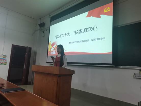 2023年11月12日,第五期预备党员党校班研究生第四党支部学员在学院128教室开展了“时常温书卷,习语暖人心”读书分享会。