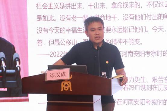 开班仪式结束后,岑汉成老师开讲第一课《领悟奋斗精神,做合格共产党员》。