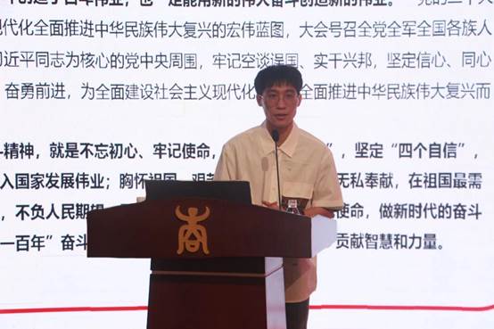 岑汉成老师从学院“奋斗连”的名字起源,引入培养学生奋斗精神的教育目标。随后,以中国共产党员精神谱系作为基本脉络,结合党史,从中整理出优秀共产党人先进事迹蕴含的奋斗精神。并总结“自力更生、艰苦创业;敢于胜利,勇于斗争;坚持真理,百折不挠;胸怀大局,无私奉献”四个奋斗的内涵。希望学员们能够把握两个大局,在中华民族伟大复兴的道路上,以奋斗精神督促自己做一名合格党员,为国家做贡献。