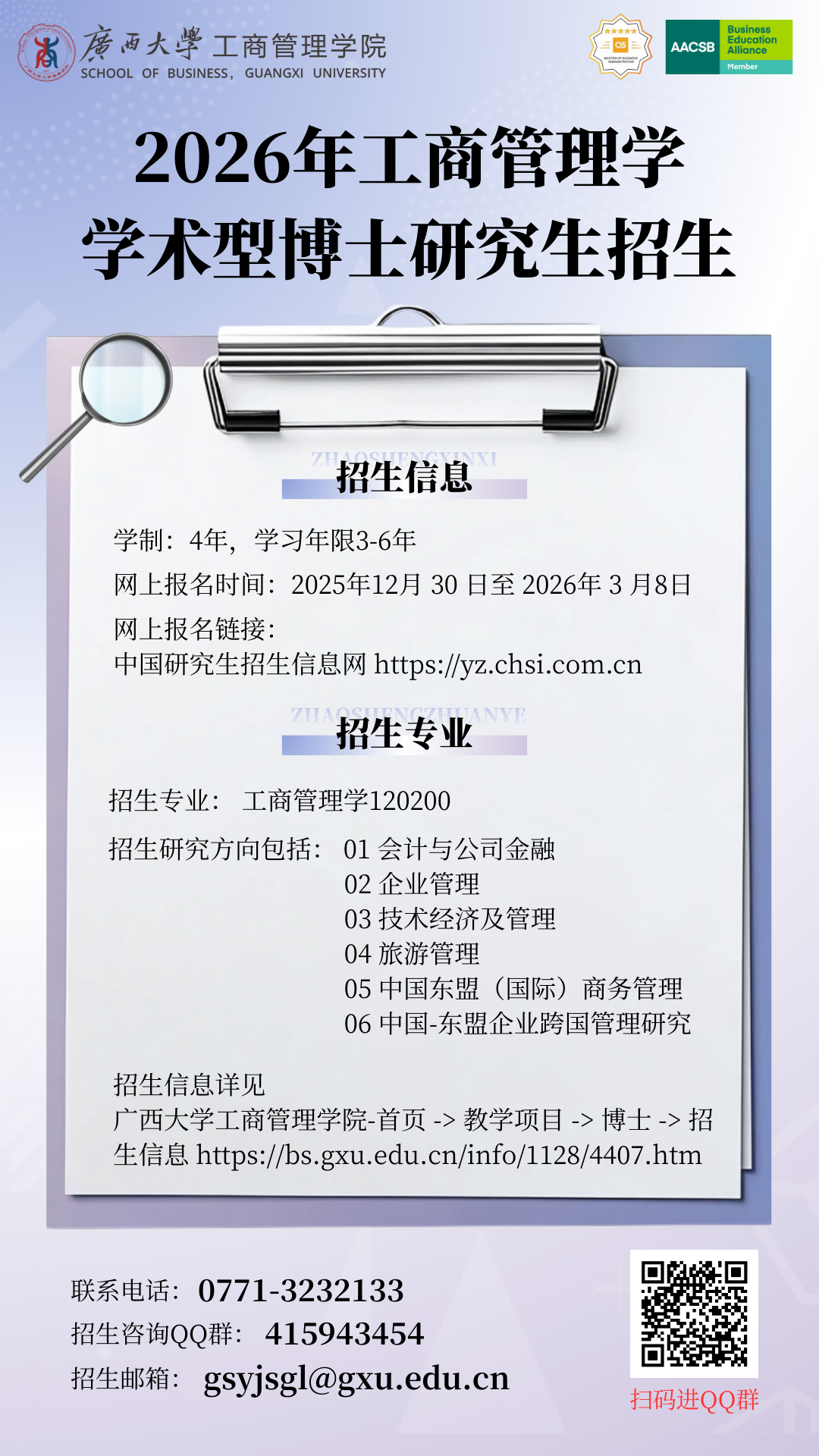 2026年工商管理学学术型博士研究生招生宣传海报
