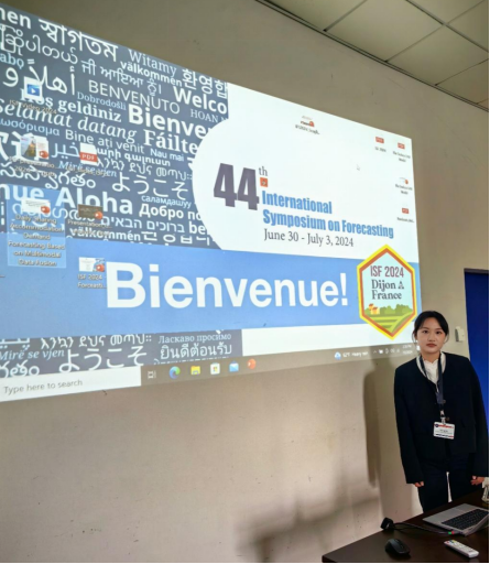 学术型硕士研究生叶钰玲在胡明明副教授的带领下,参加了在法国第戎举办的第44届国际预测研讨会。