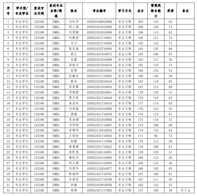 附件1: EMBA一志愿复试名单(32人)