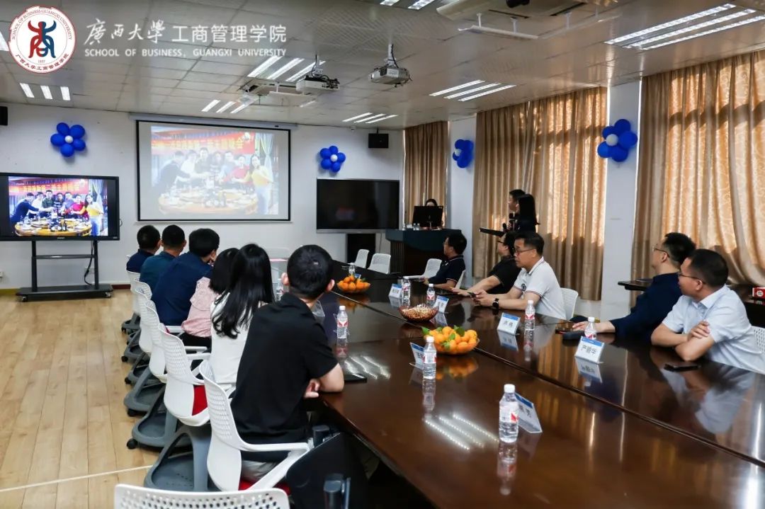 EMBA十三班校友毕业五周年返校座谈会在学院516教室举行。学院副院长朱少英、学院校友工作与政企服务办公室主任覃朝勇、EMBA授课教师代表黎鹏教授等学院领导、老师出席了本次座谈会。EMBA教育中心主任宁雪莲、EMBA十三班校友杨森主持座谈会。