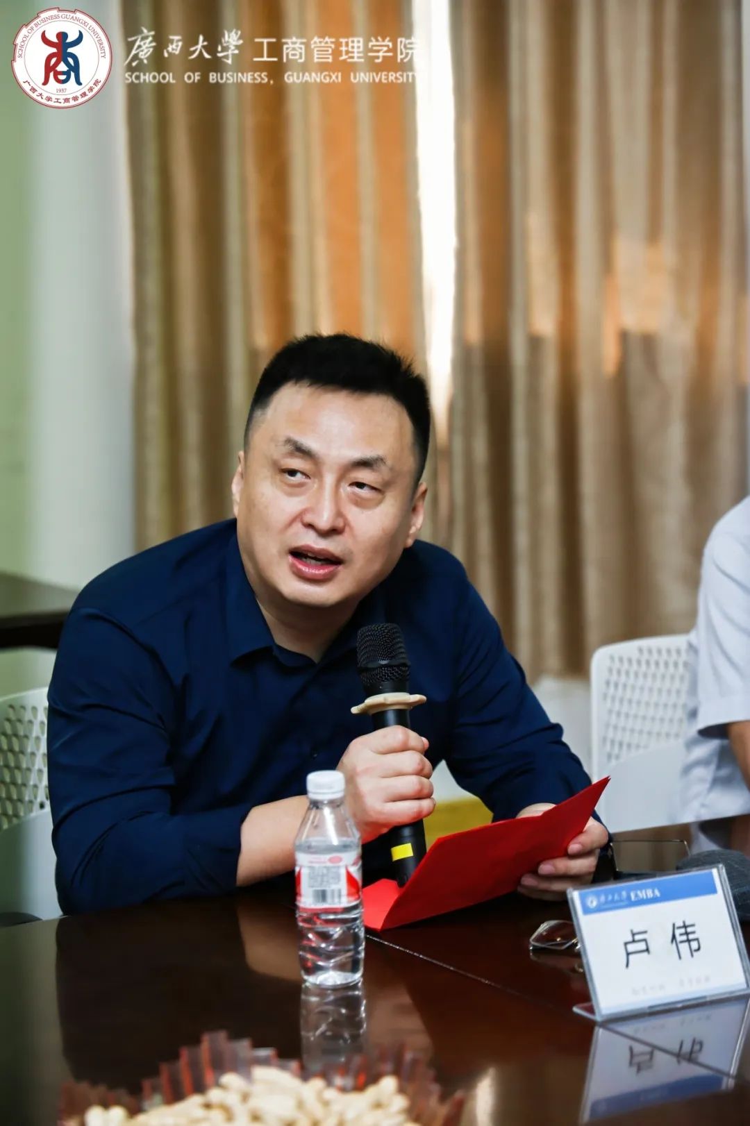 EMBA十三班班长卢伟代表班级向辛勤付出的老师们致以崇高的敬意和衷心的感谢。他回忆了两年在校期间开学拓展、上课和课后活动的点点滴滴。他表示,五年后重返校园,欣喜地看到学校、学院日新月异的变化,祝愿学校加快建成特色鲜明、国内一流的综合性研究大学,祝愿学院早日跨进新时代一流商学院,祝愿H动画
