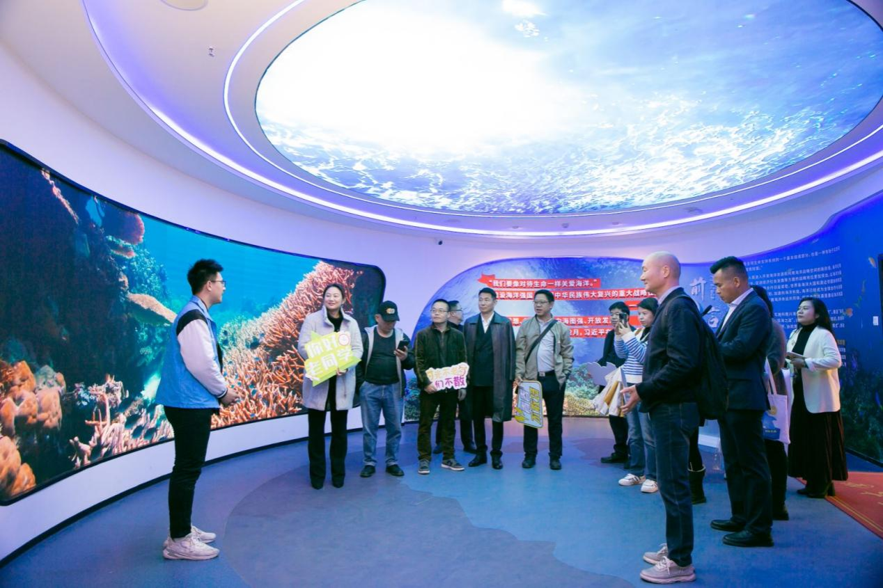 海洋科教馆拉开序幕。校友们在此欣赏了海洋生物模型和珊瑚礁样本等珍稀展品,志愿者讲解员生动描绘了海洋生物的奇妙世界,令校友们赞叹不已。