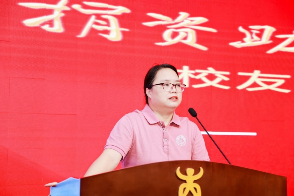 朱少英副院长代表学院向范雷校友表达了诚挚的谢意,她表示,广大校友在各自的领域辛勤耕耘,施展才华,创造业绩,不仅为社会各项事业做出了积极贡献,更为母校赢得了良好的社会信誉。范雷校友此次捐赠,深刻诠释了校友们对母校的深情厚谊,生动展现了校友爱校荣校助校的赤子之情,她期待各位校友常回母校看看,积极为母校的发展建言献策。