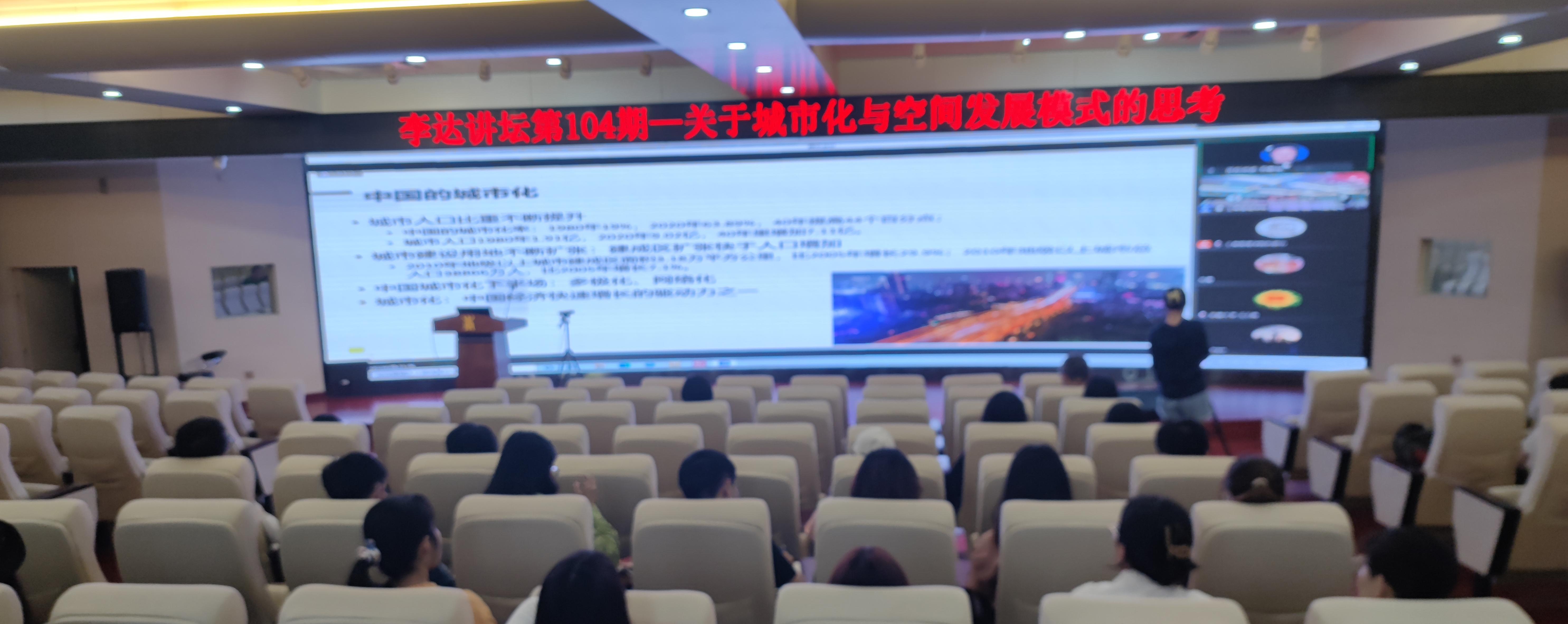 第104期“李达讲坛”,以“关于城市化与空间发展模式的思考”为题,进行学术分享。本次讲坛线上线下同步进行,约有100名师生参加。讲坛由H动画