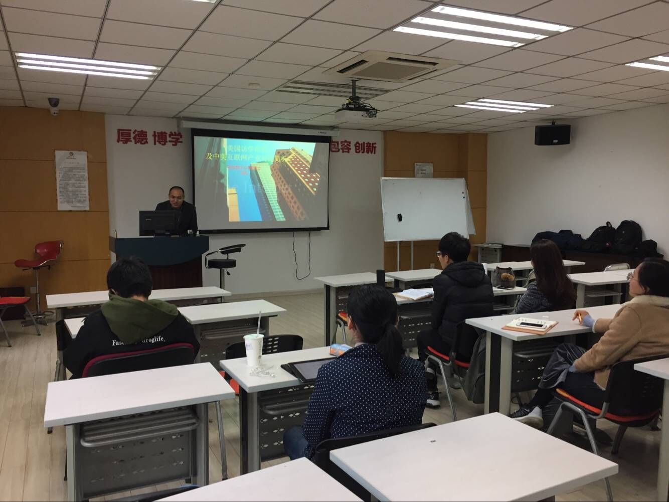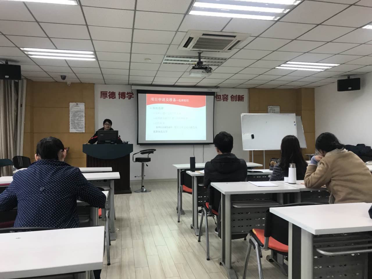 博士研究生许露元、李雄师和陆松在学院613教室将奔赴新加坡、美国进行学术访学经验与商学院同学进行了留学研修报告会。