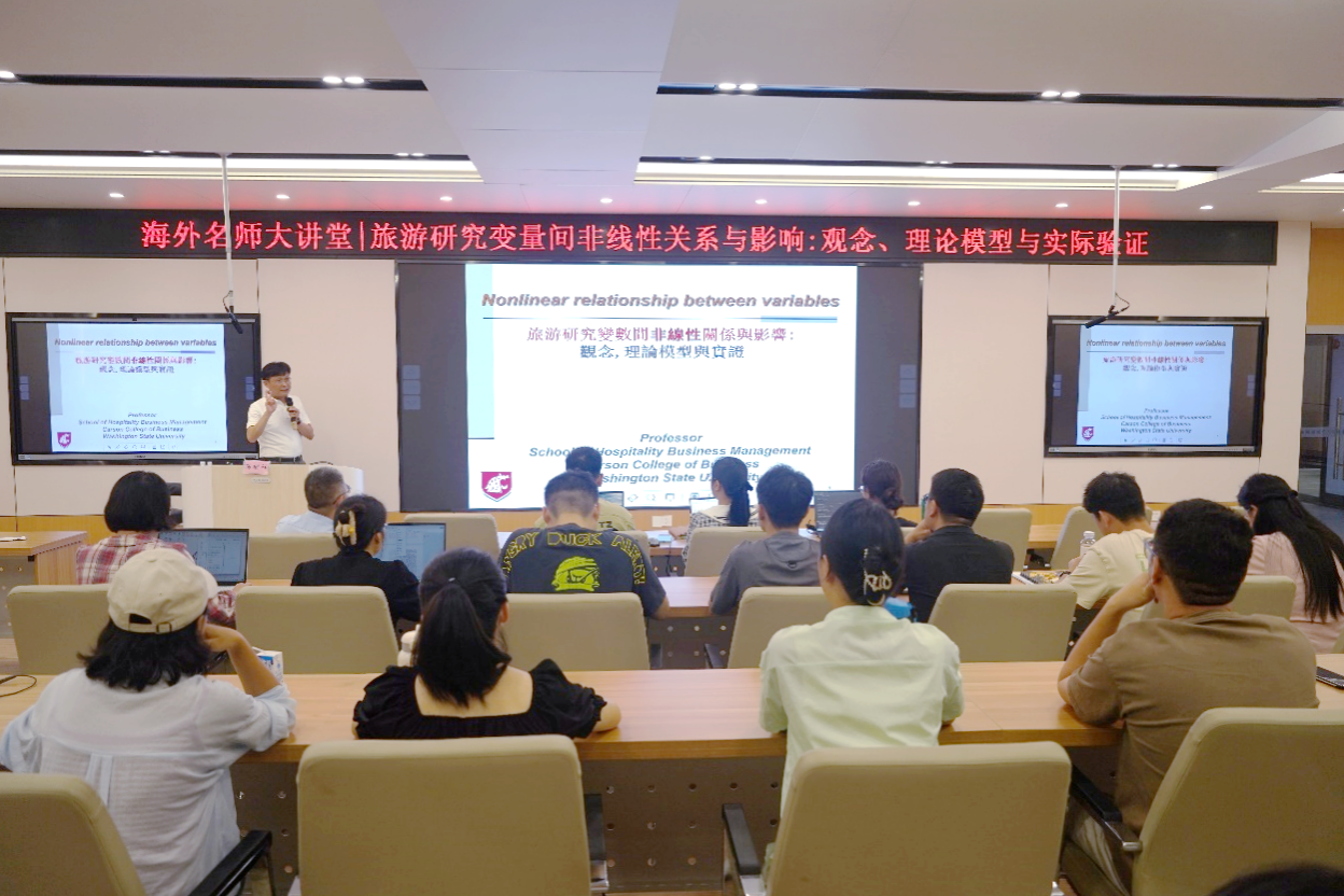 海外名师大讲堂,以“旅游研究变量间非线性和不对称关系与影响:观念,理论模型与实证”为题在学院122报告厅为H动画