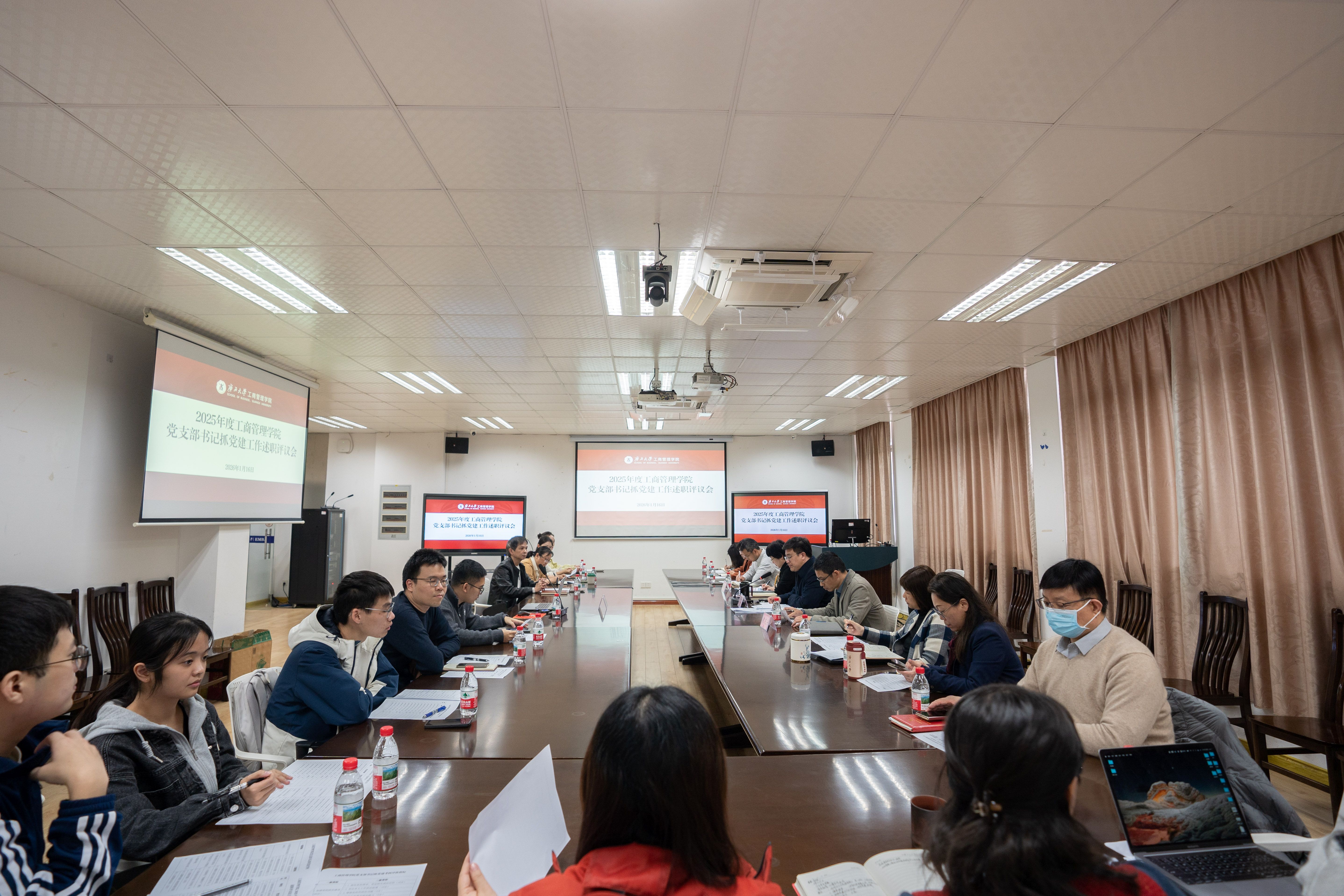 1月16日下午,H动画 党委在516教室召开2025年度党支部书记抓党建工作述职评议会。学院党委书记黄晋、党委副书记肖克宁、副院长廖东红、各党支部书记及师生党员代表出席会议,会议由党委书记黄晋主持。 -