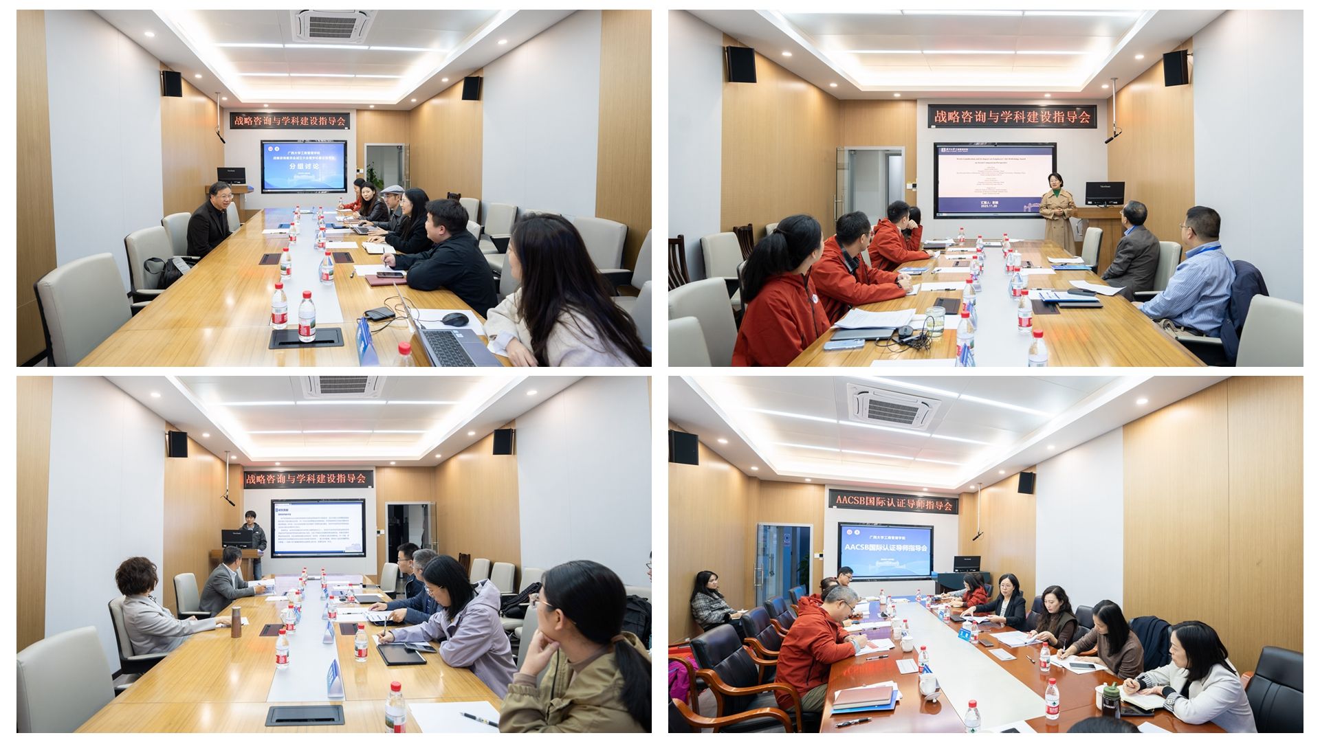 下午,专家与学院教师代表分四个研讨室开展分组讨论。聚焦学科交叉融合、创新人才培养、AACSB认证、产教融合机制与校企合作模式、东盟商科研究与国际合作路径等方面展开深度对话。大家畅所欲言,气氛热烈。