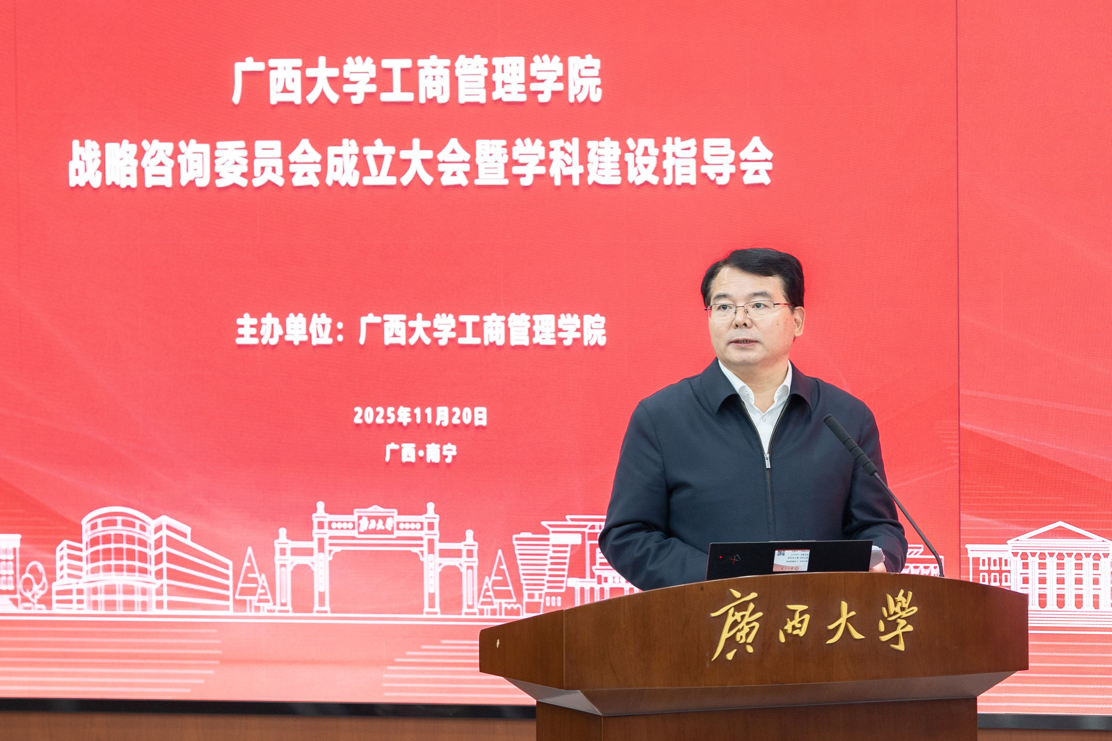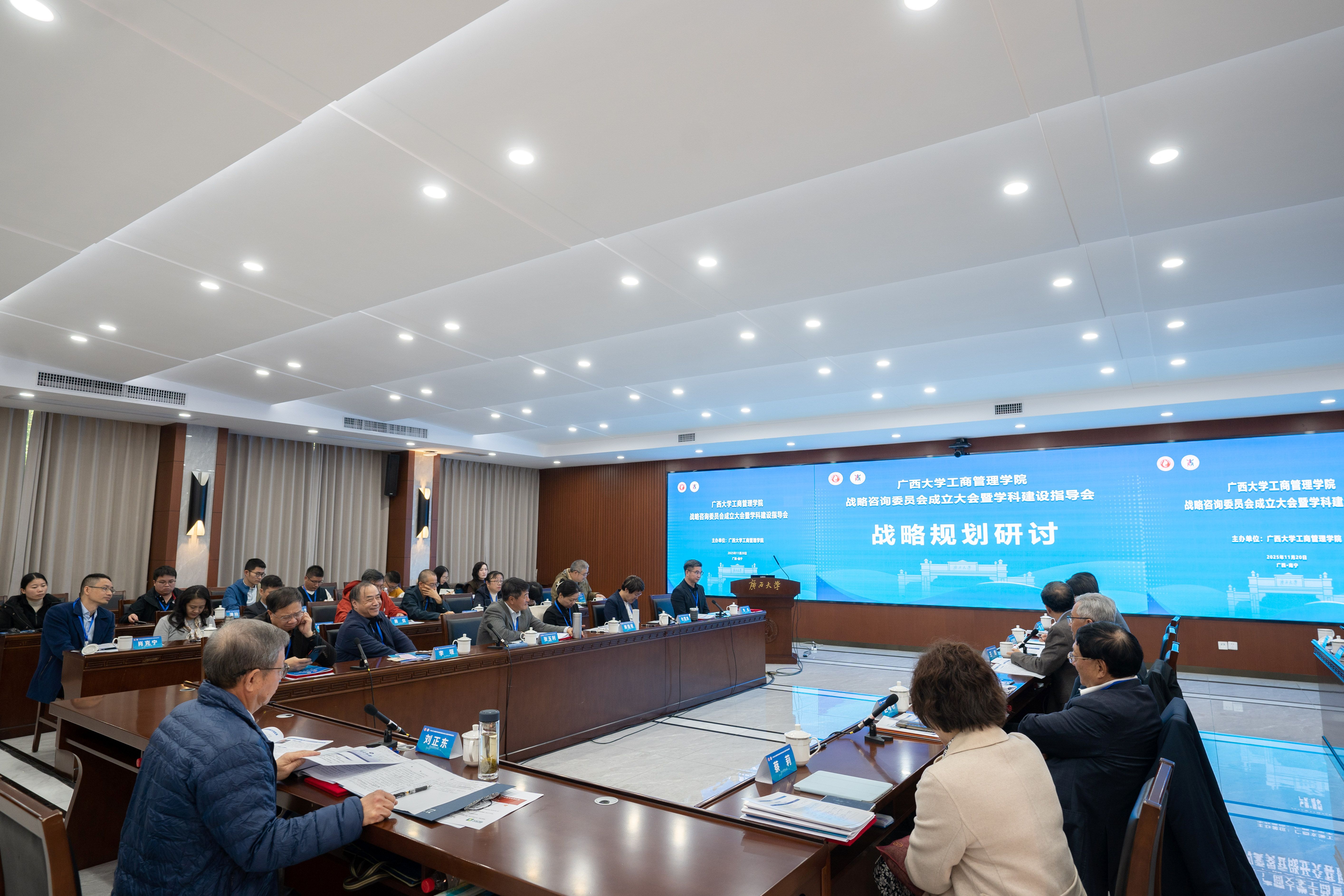 在学校君武馆第二会议室召开战略咨询委员会成立大会暨学科建设指导会,广西壮族自治区政协第十一、十二届副主席、广西慈善联合总会会长,H动画