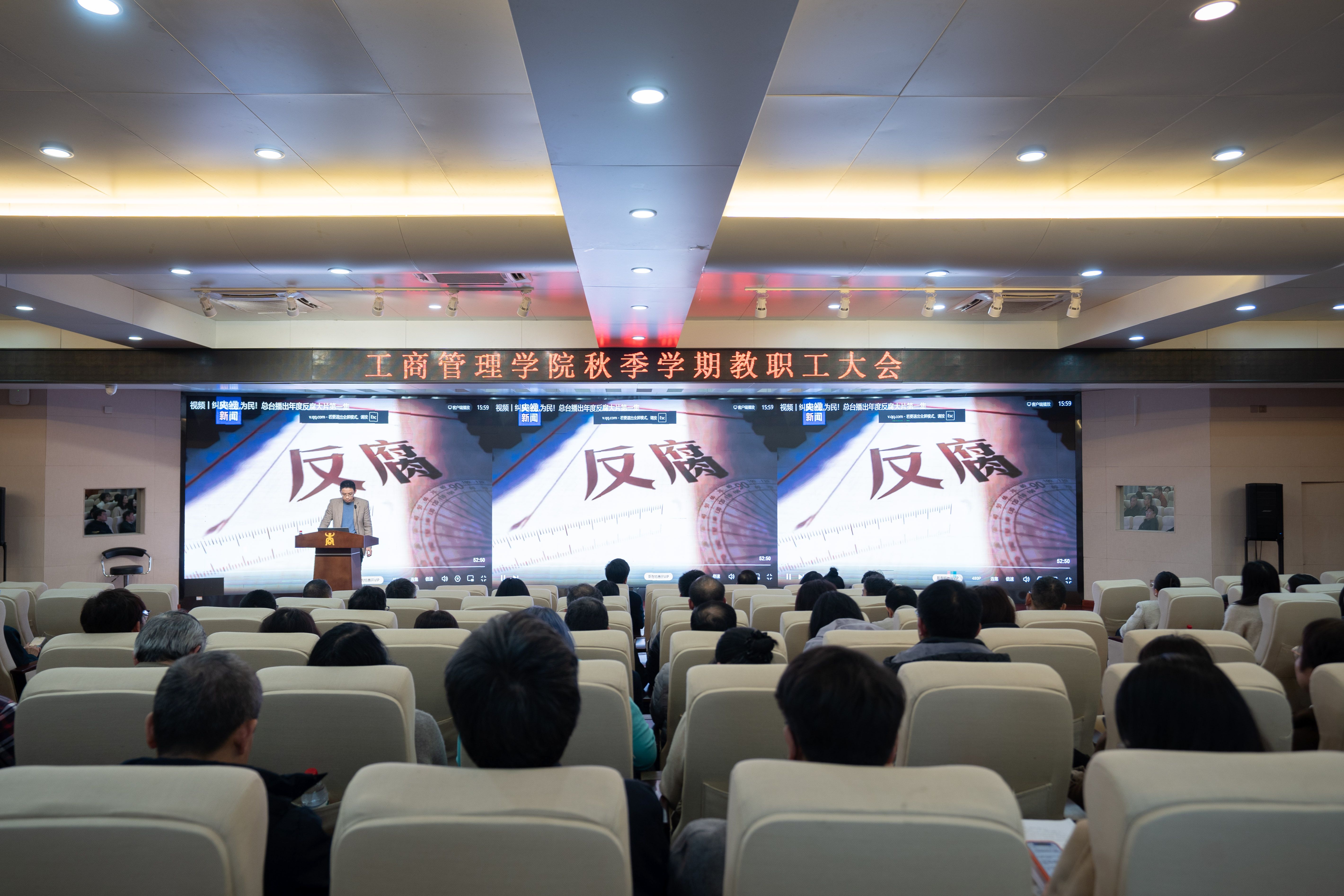 在128报告厅召开期末教职工大会,全面总结2025年发展成效,系统部署2026年重点工作。学院党委书记黄晋、院长朱帮助、党委副书记肖克宁,副院长申韬、廖东红、韦铁,院长助理蒋侃出席会议,全体教职工参加了会议。