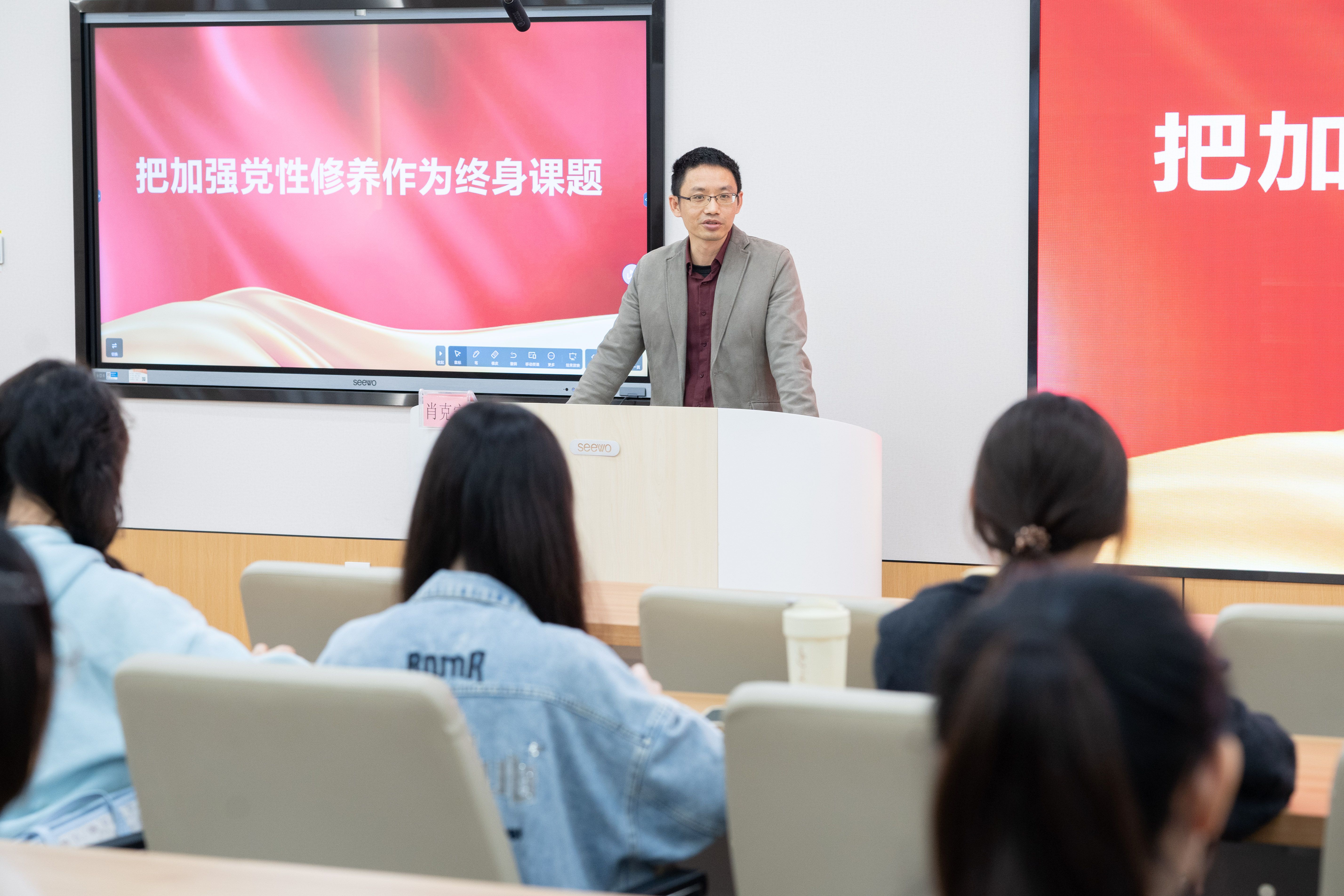 与此同时,肖克宁在学院122教室以“加强党性修养,做合格的共产党员”为主题为预备党员授课。他结合预备党员即将转正的身份特点,提出具体要求:要把党性修养融入日常、抓在经常,通过原著精读、支部“三会一课”、时政案例研讨等方式,持续深化对党的政治理论的理解。要始终在思想上、政治上、行动上同党中央保持高度一致,自觉遵守党的纪律规矩,做到言行一致、表里如一。